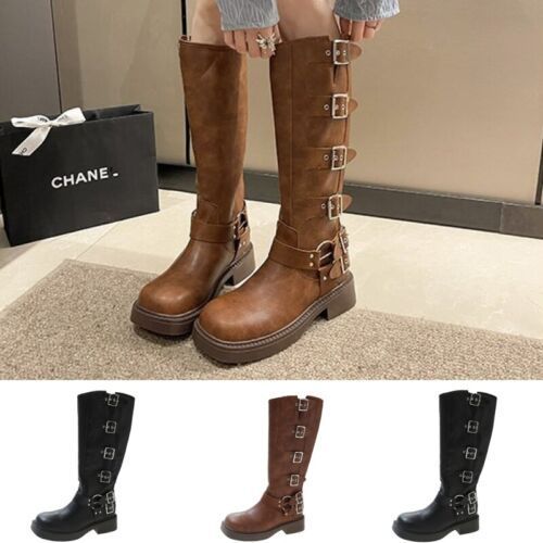 Frauen Reitstiefel Quadratzehe Knie Hohe Schuhe Damen Lassig Draussen
