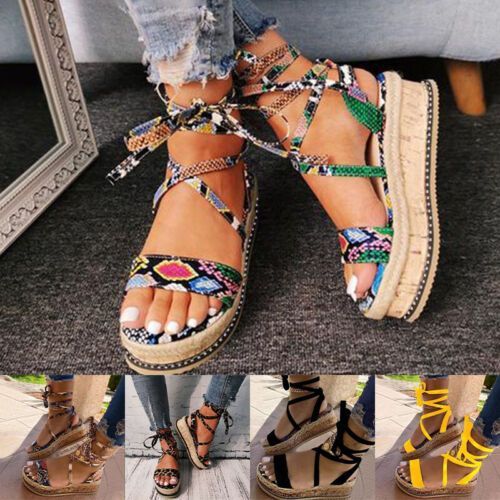 Frauen Sandale Schnuren Riemchensandale Damen Leicht Strand Romisch Schuh Sommer