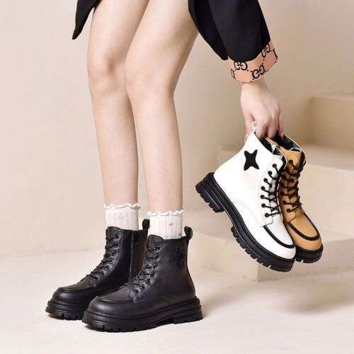 Frauen Stiefeletten Lug Sohle Kampfstiefel Damen Lassig Arbeit Plattform Schuhe