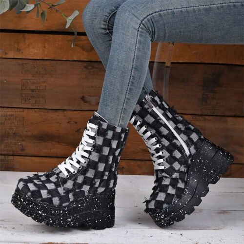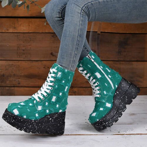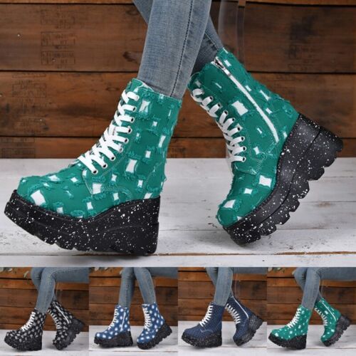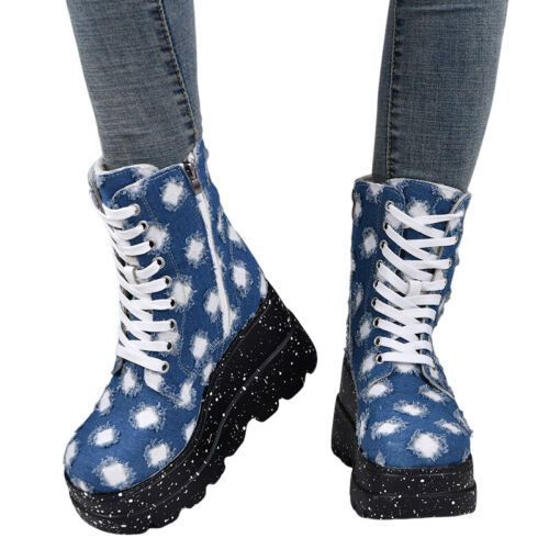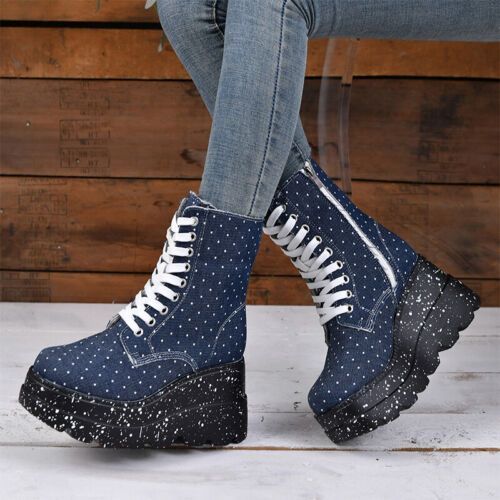 Frauen Stiefeletten Mit Keilabsatz Schnuren Damen Leicht Party Plattform Schuhe