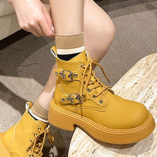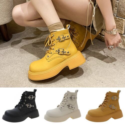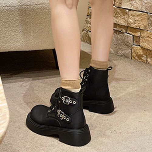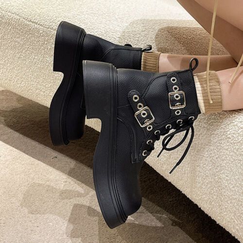 Frauen Winterstiefel Schnursenkel Stiefeletten Damen Mode Gehen Plattform Schuhe