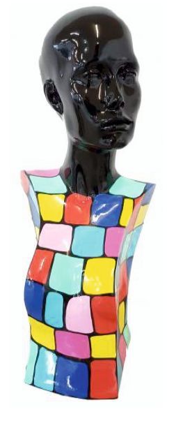 Frauenbéste bunte Quadrate lebensgroß 58cm fér draußen aus Polyresin
