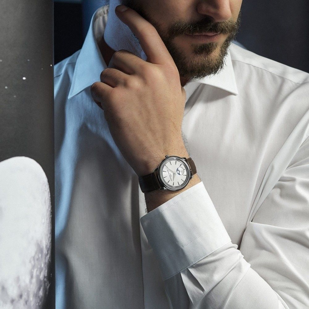 Marke: Frederique Constant Referenz: FC-206S3S6 Geschlecht: Mann, Frau Ladezustand: Quarz Zifferblattfarbe: Silber Gehäusematerial: Stahl Bandmaterial: Leder Produktionsjahr: 2024 Bandfarbe: Braun Verschluss: Schnalle Verschluss Material: Stahl Gehäusedurchmesser: 37 mm Gehäusehöhe: 7;65 mm Wasserdi