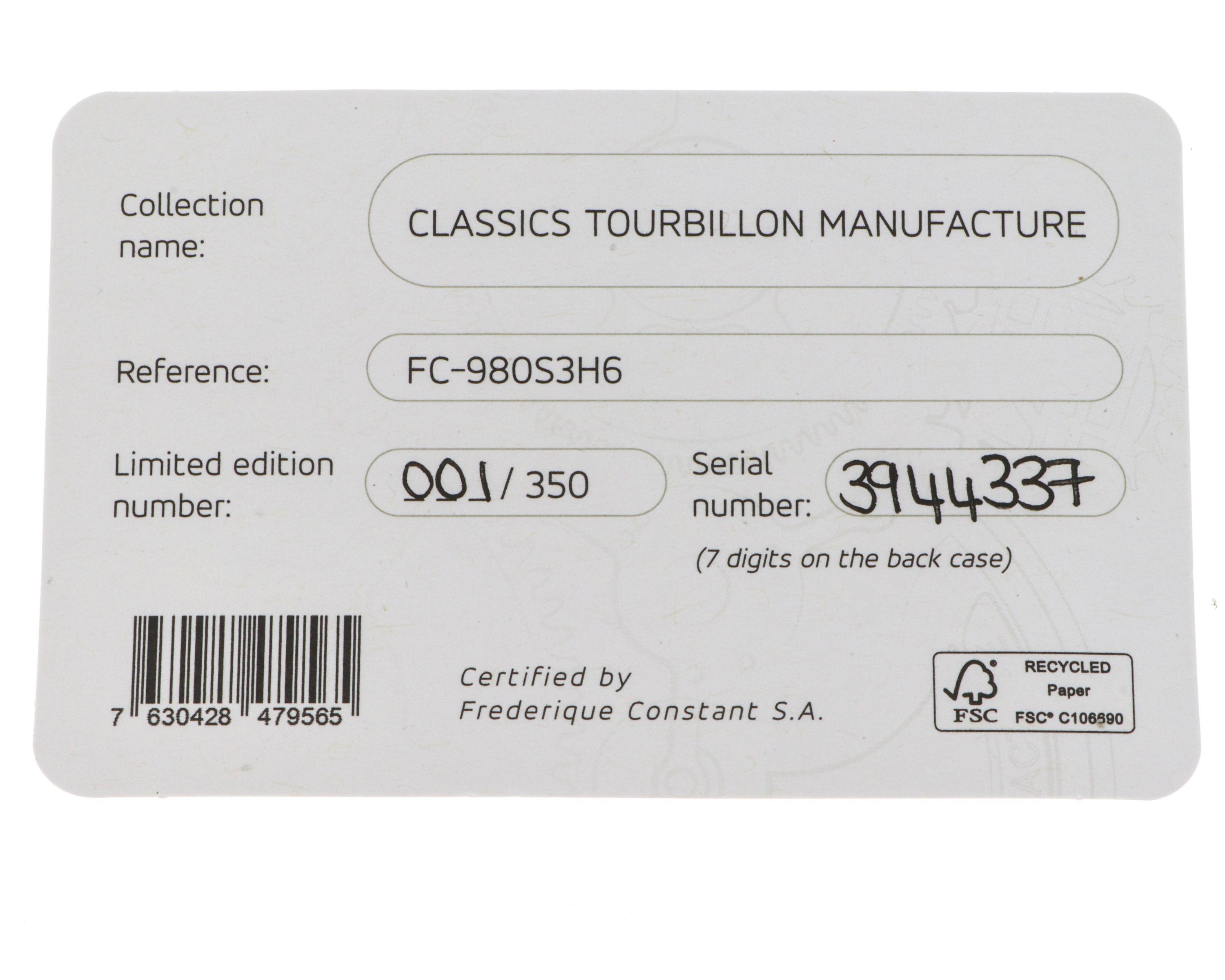 Frederique Constant - FC-980S3H6 - Manufacture Classic Tourbillon 1/350
