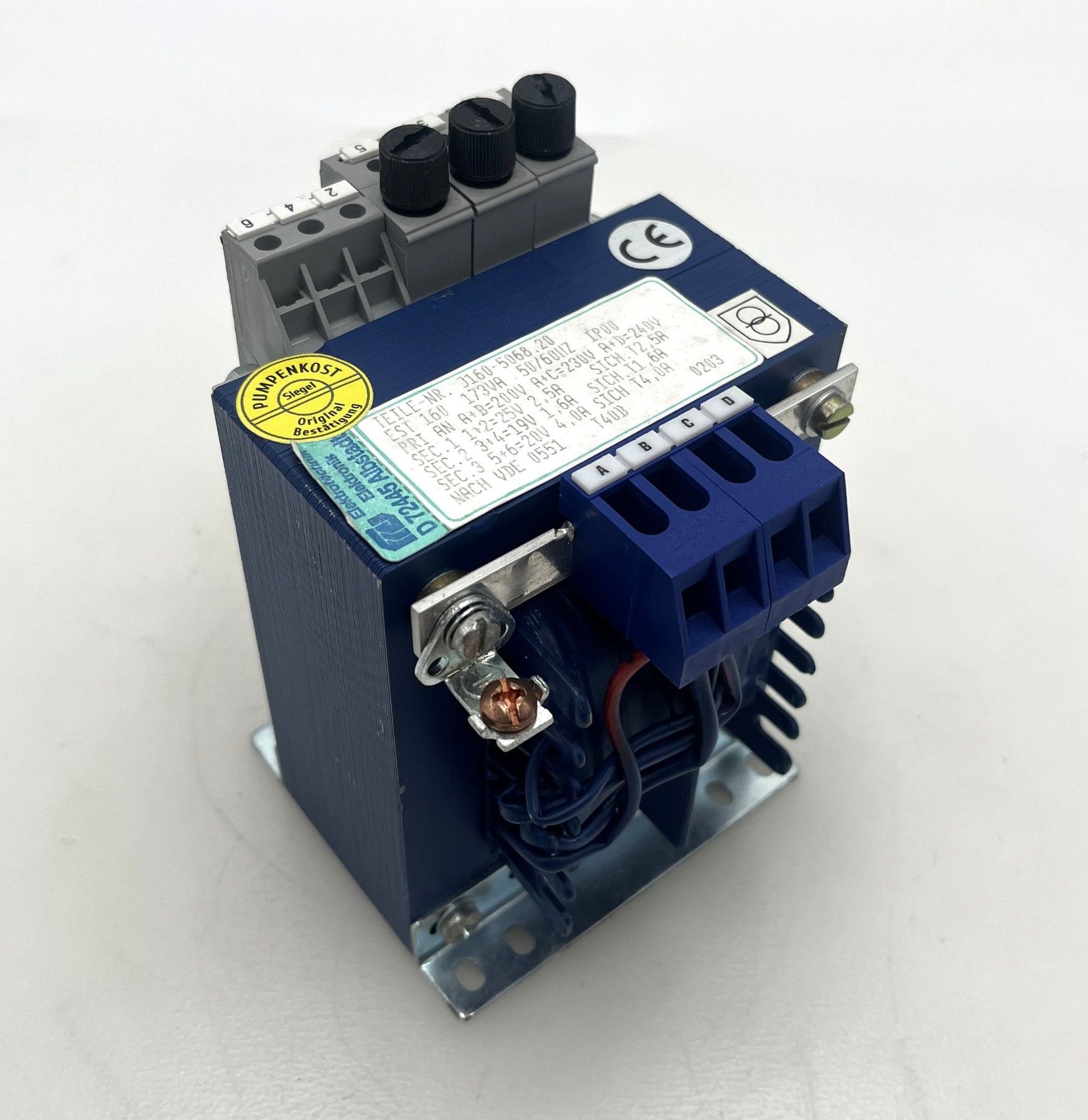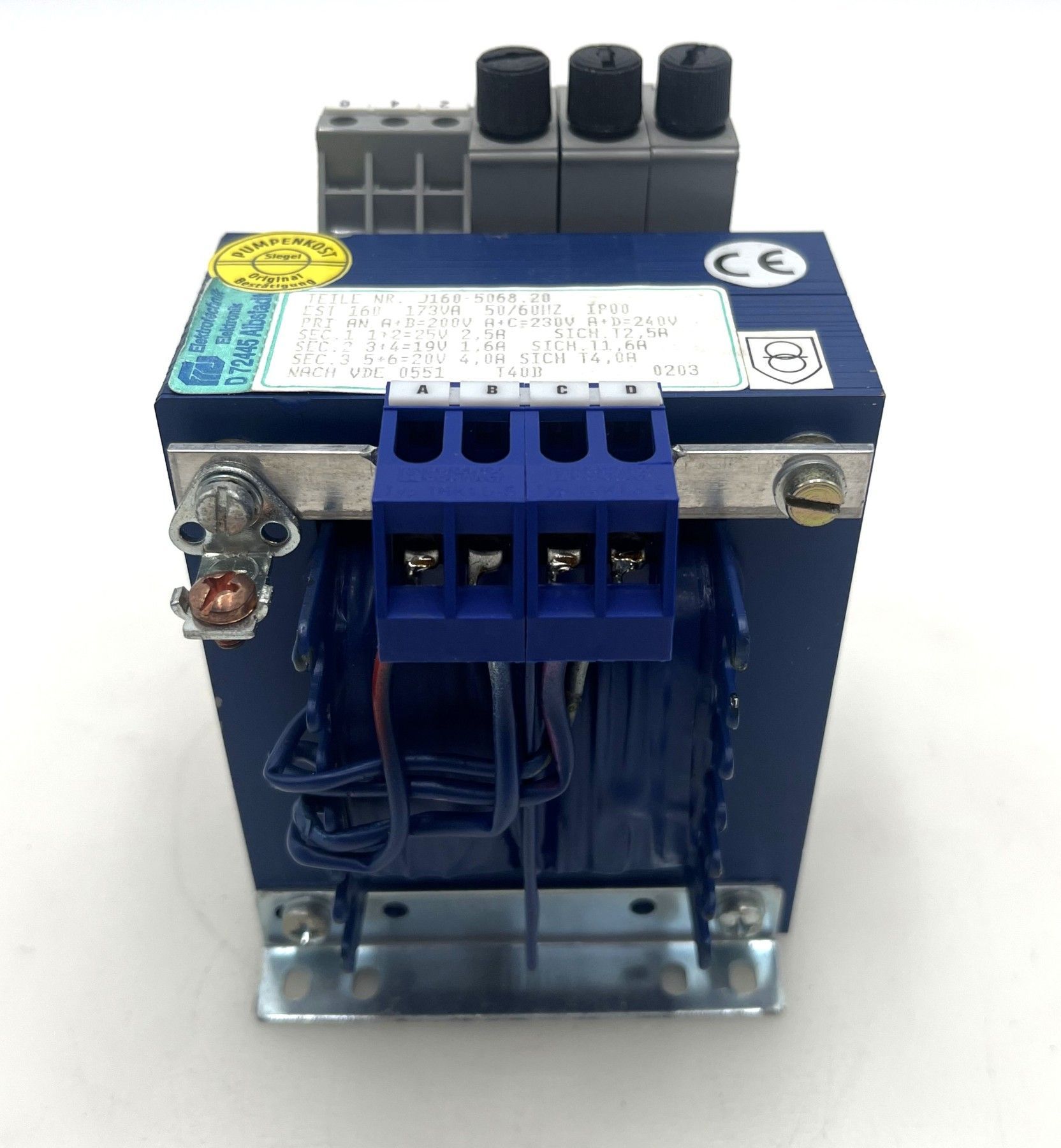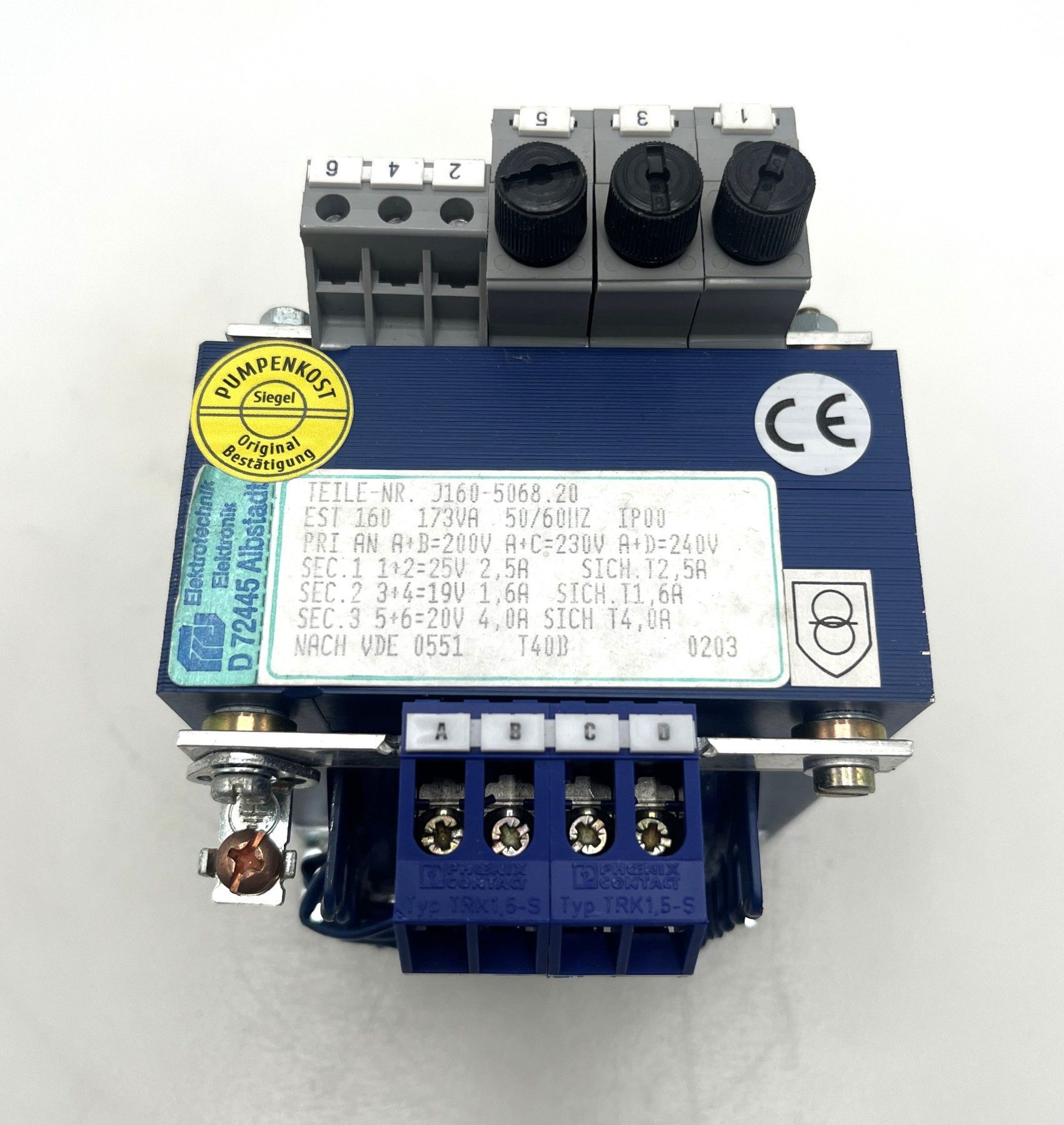 FREI Elektrotechnik Transformator EST 160 – Mehrspannungs-Trafo 173 VA Dieser hochwertige Transformator von FREI Elektrotechnik (Typ EST 160) bietet mehrere Sekundärspannungen und ist ideal für Elektronik, Steuerungen und industrielle Anwendungen . Durch die verschiedenen Ausgangsspannungen is
