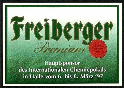 • Brauerei-Aufkleber "Freiberger Premium, Chemiepokal Halle 1997" Brauhaus Freiberg