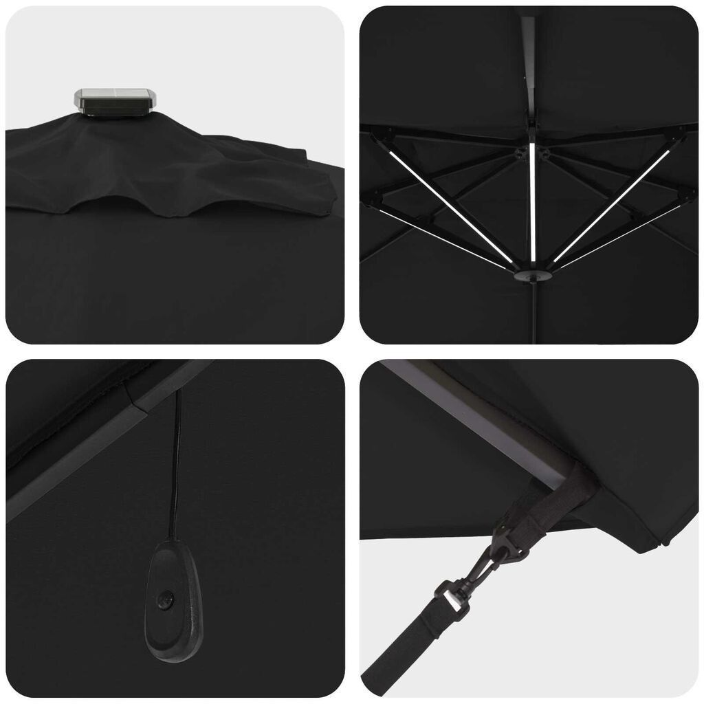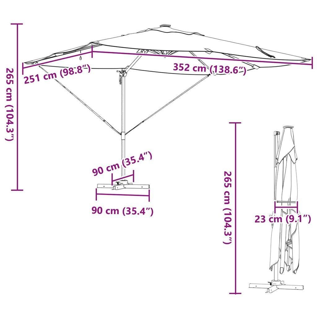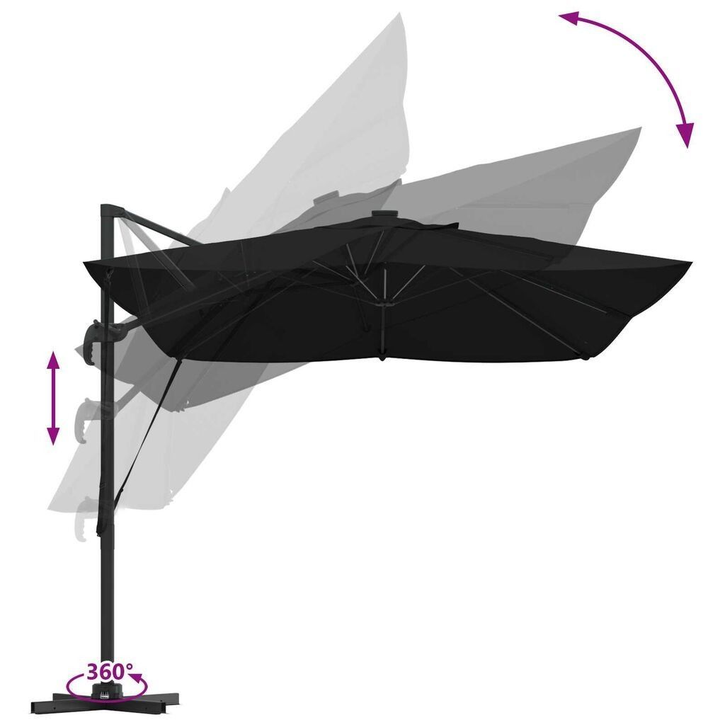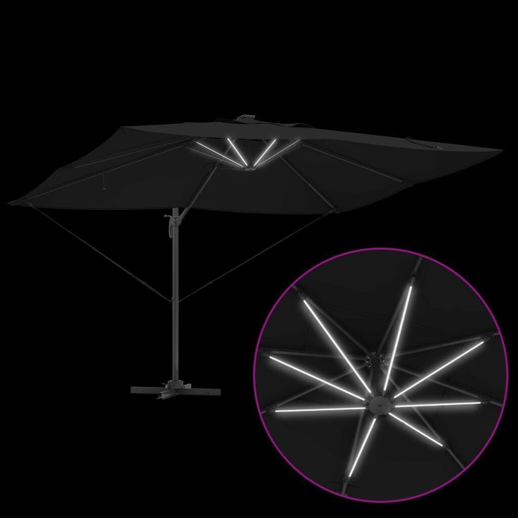 Freischwingender Roma-Sonnenschirm mit LEDs, 360° drehbar, 352x251x265cm