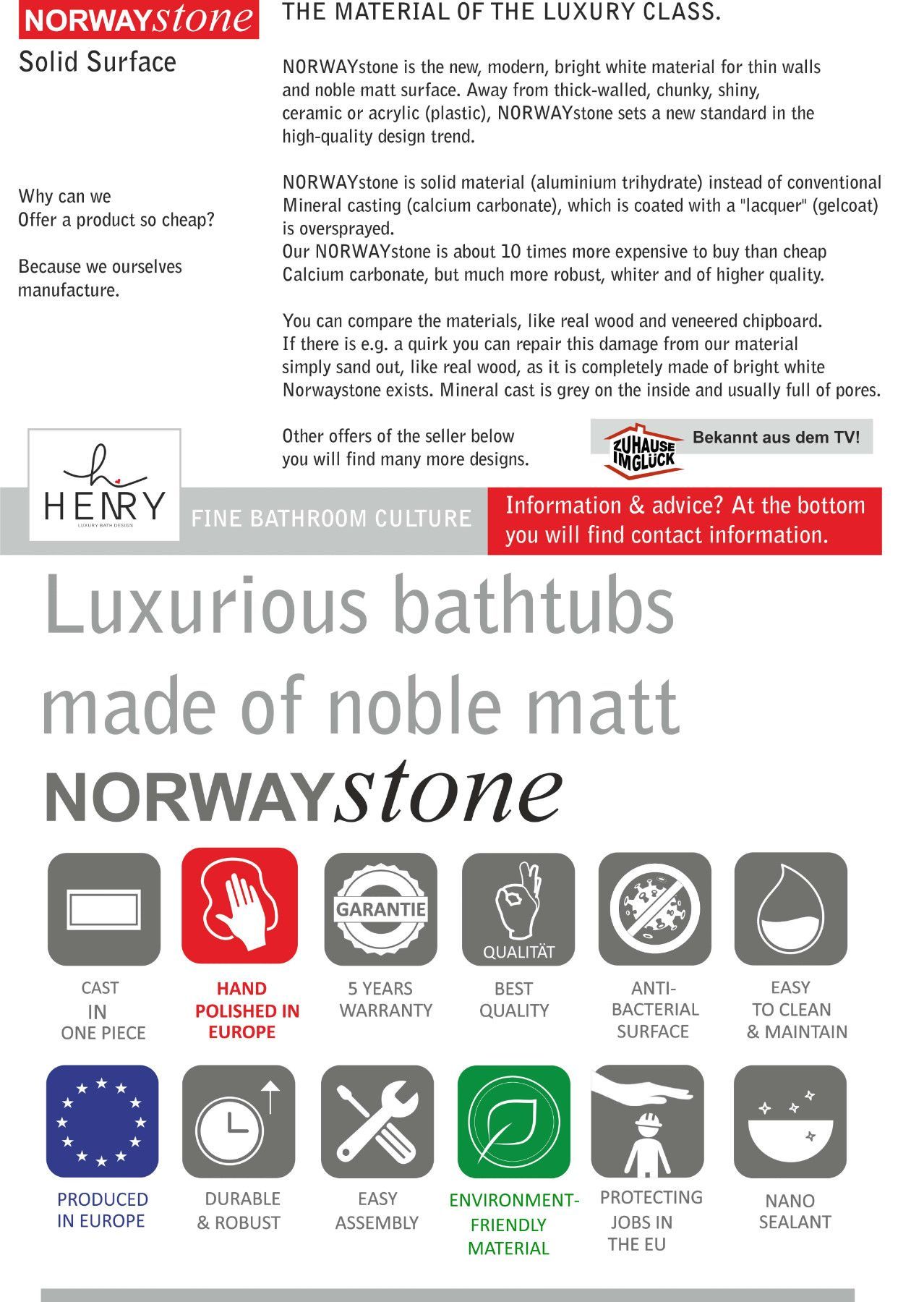 Freistehende Badewanne 180 Gussmarmor Mineralguss Solid Stone Standbadewanne matt