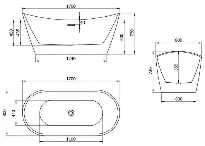 Freistehende Badewanne Bad Acrylwanne ROSSA 170x80 Ablauf Klick-Klack !