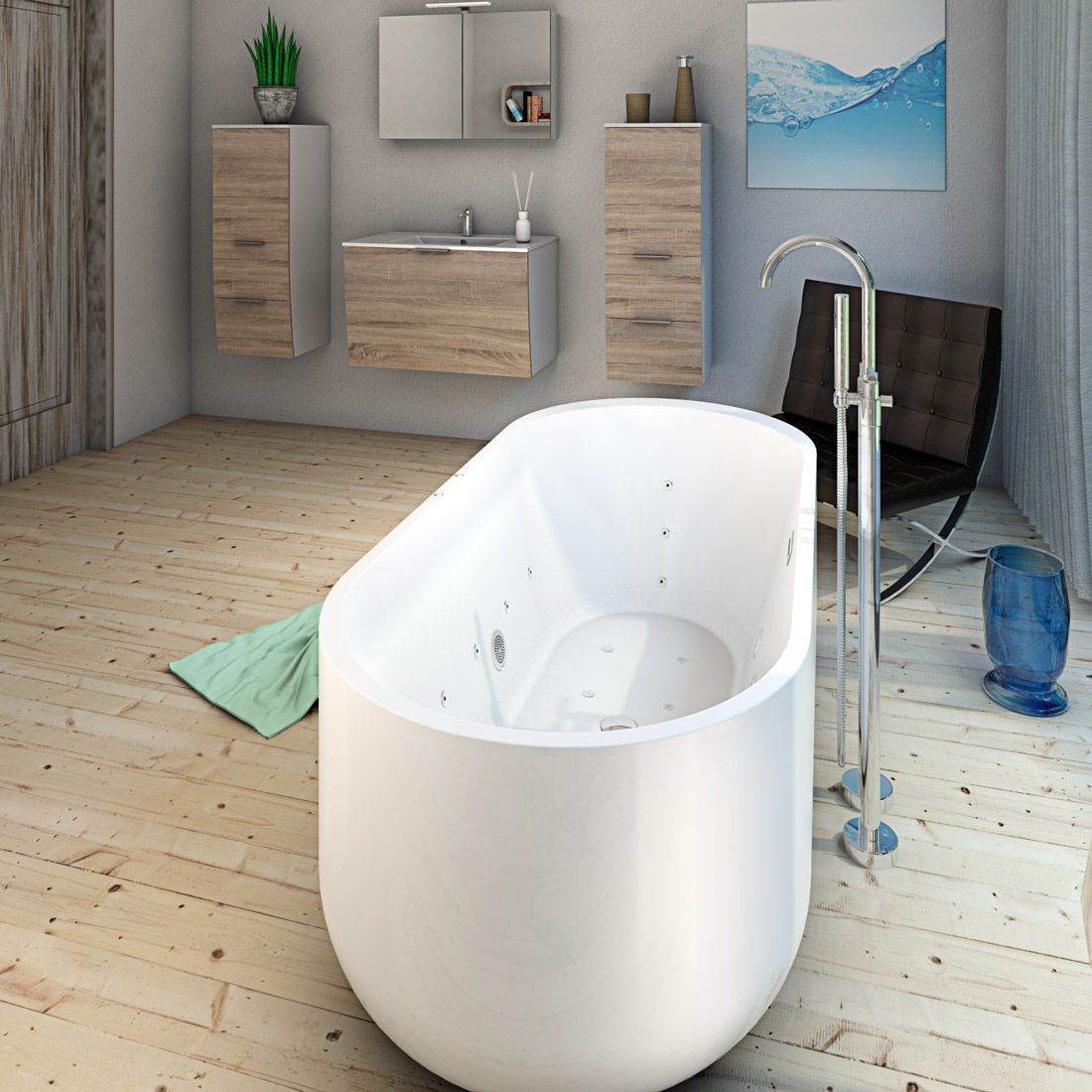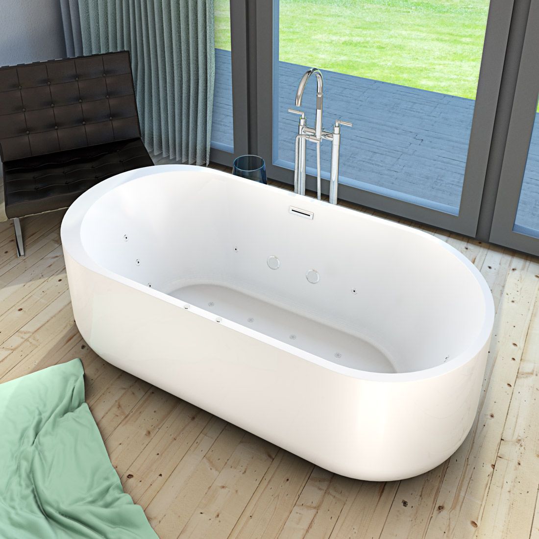 freistehende Badewanne F26 170x80cm Whirlpool Luft & Wasser mit Armatur AF03