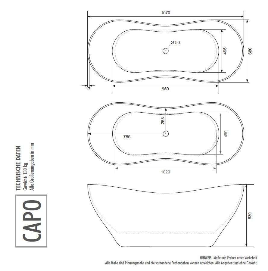 Freistehende Badewanne Gussmarmor Mineralguss Solid Surface Standbadewanne matt
