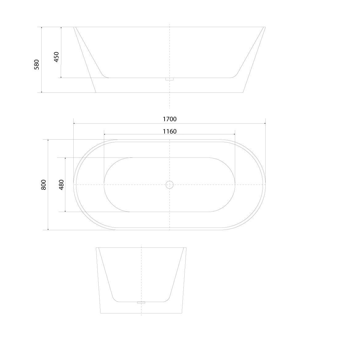 freistehende Badewanne Wanne Acryl F01 170x80cm mit Armatur AF05