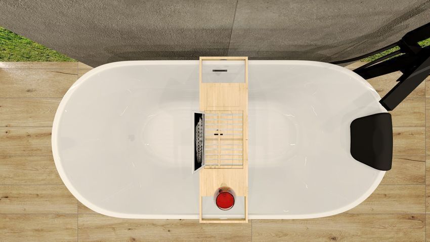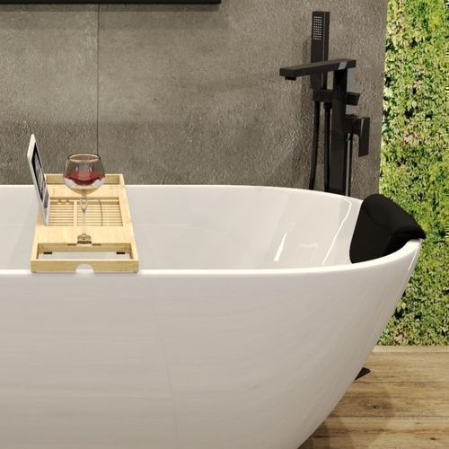 • Freistehende Badewanne Wanne ROSSA 170x80 Kopfstütze Bambus Ablage Ablauf