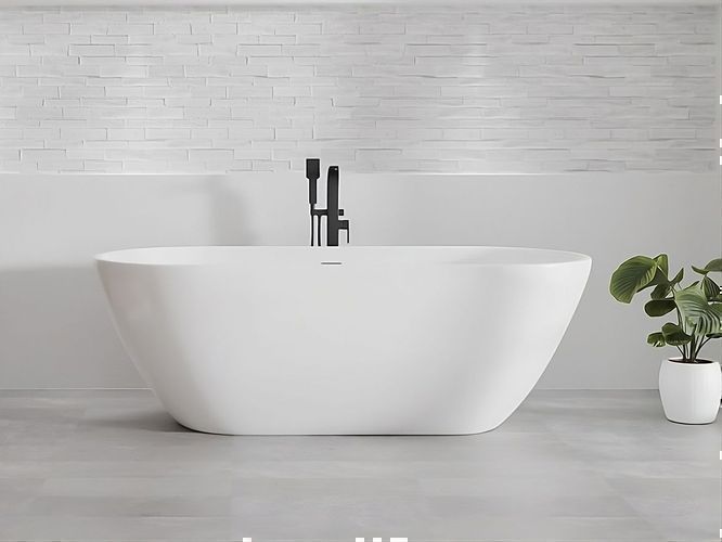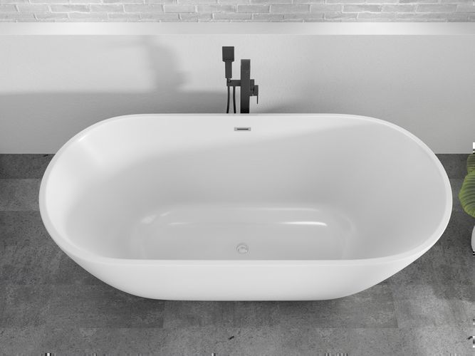 • Freistehende Badewanne Odessa Luxus Acryl Wanne für Bad Badezimmer oval freistehend