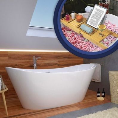 • Freistehende Badewanne Exclusive 170x80 + Bambusablage Holzablage + Ablauf VIEGA