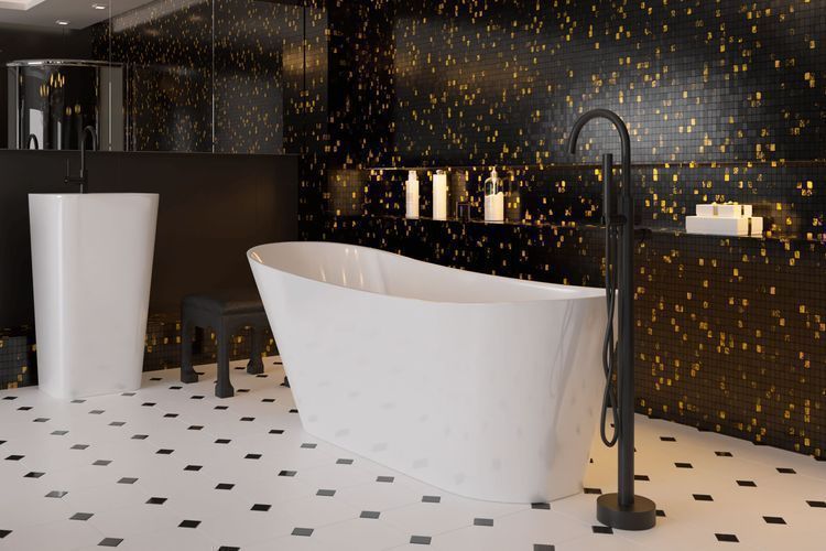 Freistehende Badewannenarmatur LUGO Wannenarmatur Wannenbatterie in Schwarz