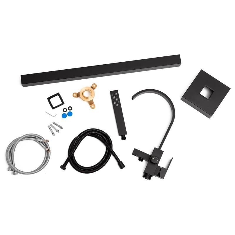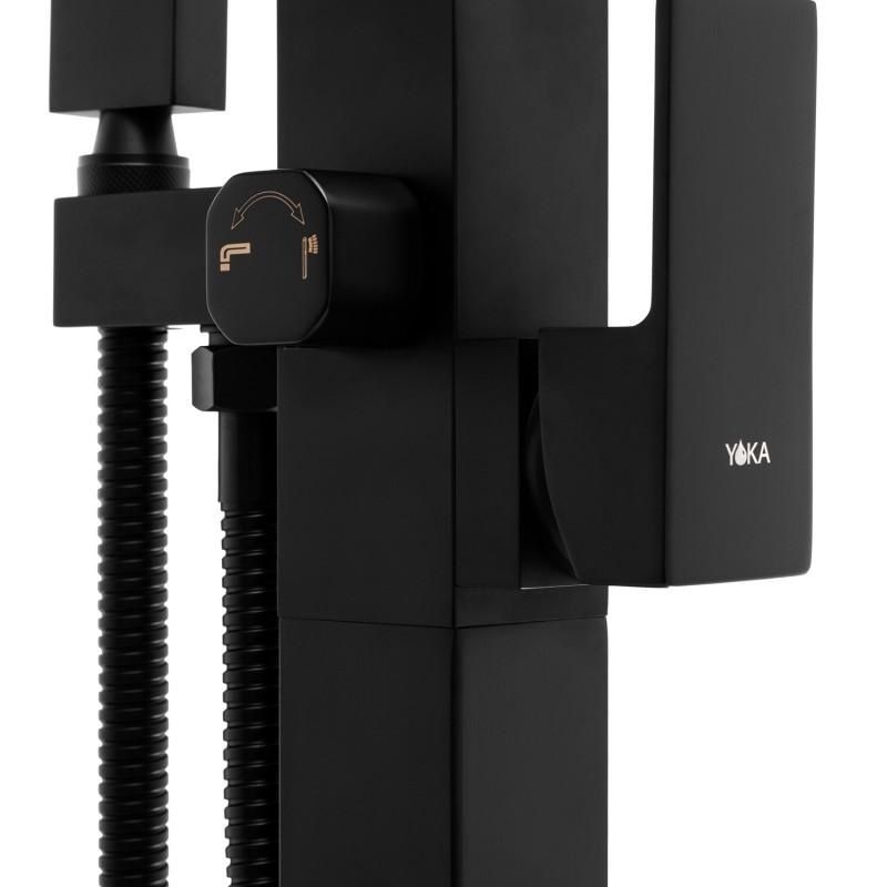 Freistehende Badewannenarmatur - mit Handbrause - 122,5 cm hoch - schwarz