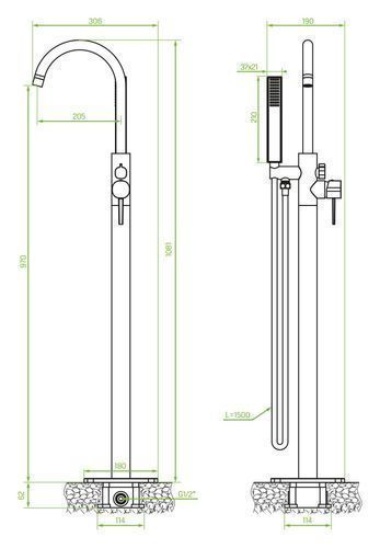 Freistehende Badewannenarmatur POLA Wannenarmatur für Badezimmer in Silber