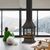 Freistehender Kamin in Schwarz aus Edelstahl Holz und Glas
