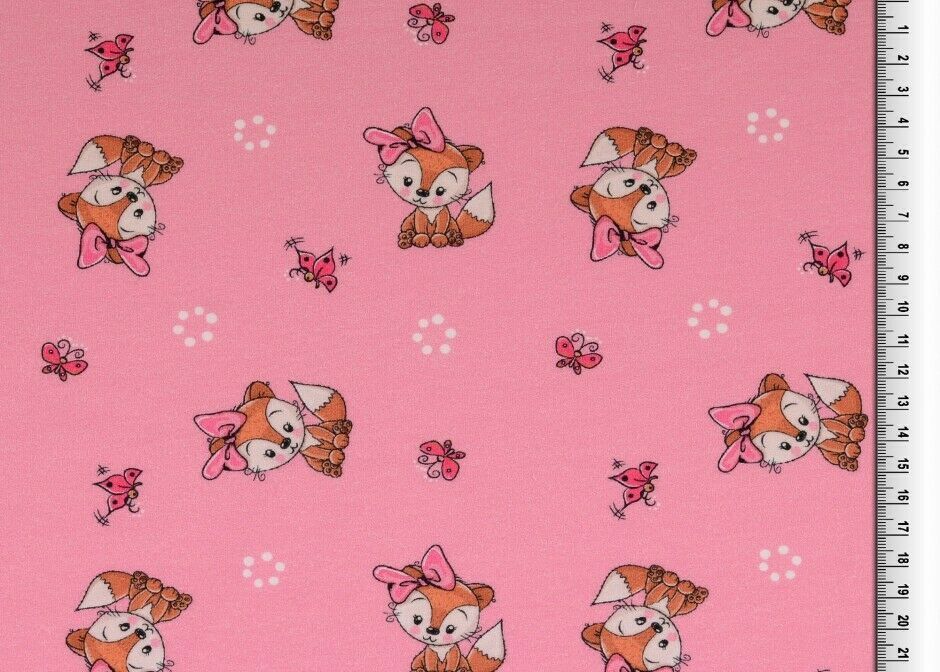 French Terry Sommersweat rosa Fuchs Schmetterling Stoff nähen Mädchen 25cm
