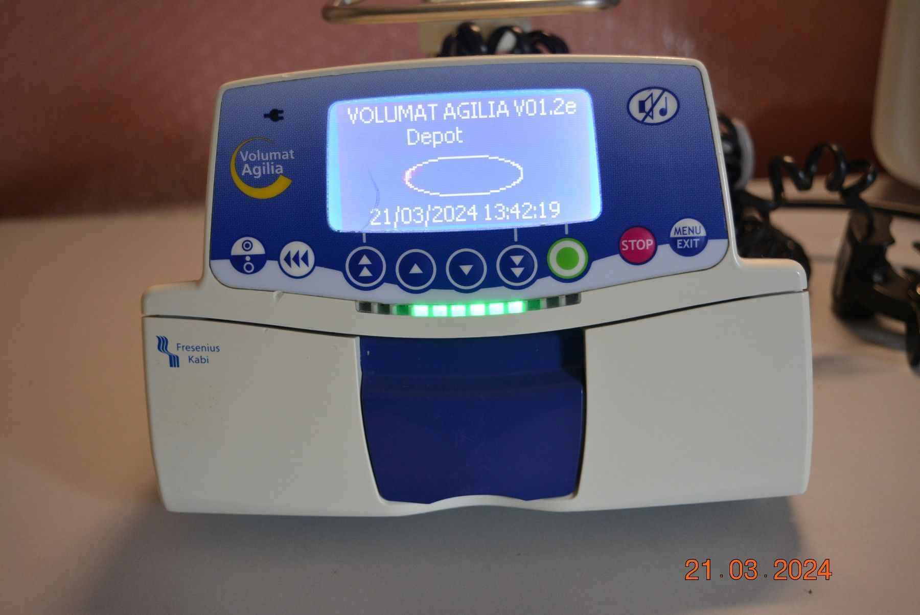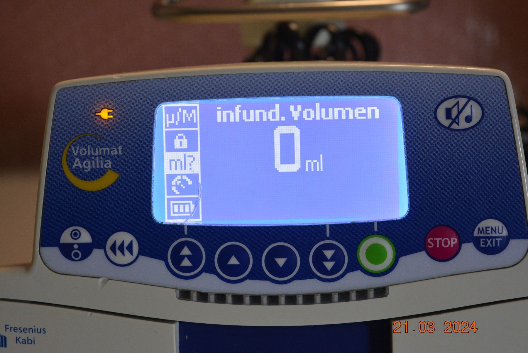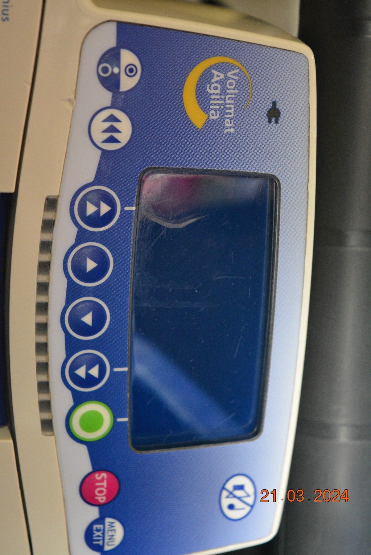 Fresenius Kabi Volumat Agilia Infusionspumpe (25) DK gebraucht, mit Tropfer voll funktionsfähig gereinigt und desinfiziert ohne Netzkabel o. Netzteil ist im Originalzustand, CE geprüft kleiner Kratzer auf dem Bildschirm stört aber die Funktion nicht geliefert wie auf den Fotos zu sehen ist, kein wei