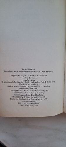 Friedhof der Kuscheltiere" TB von Stephen King / Gut -sehr gut/ Horror Roman !