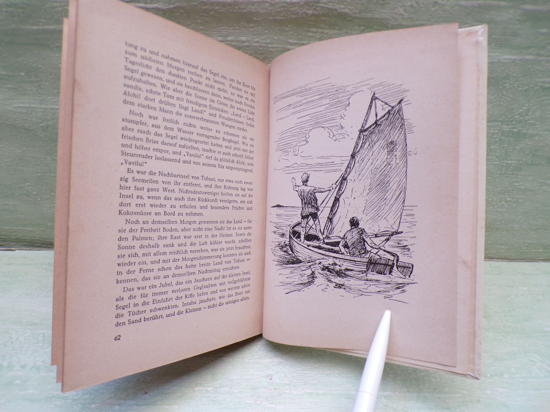Jugend- & Kinderbücher ua ... Erinnerungen ..... Friedrich Gerstäcker Fahrt in die Freiheit . Einabnd und Textzeichnungen Karl Stephan Hochbändchen nr 13 9.-15. Tausend 1953 . HC & unbeschriebene Postkarte des verlages . Zustand : Bestoßungen am Buchrücken , Seiten 2 und 3 mit Fleck , sonst