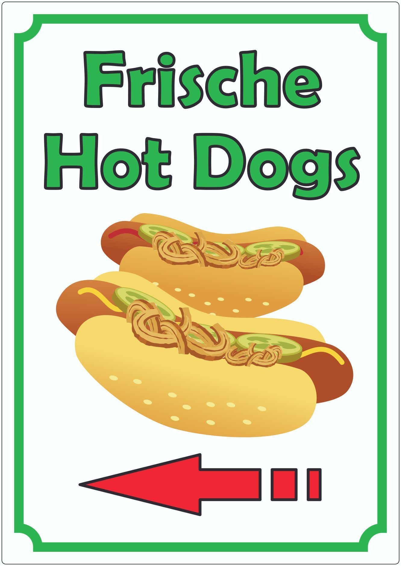 Frische Hot Dogs Aufkleber Hochkant mit Pfeil links
