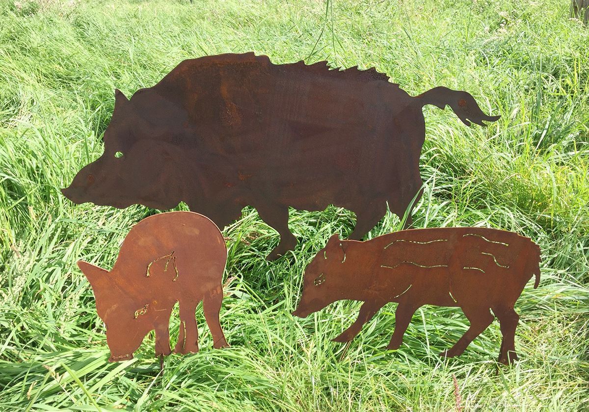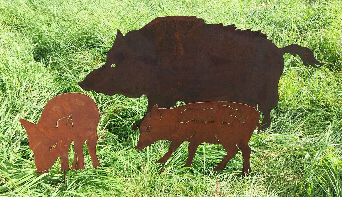 Frischlinge 30cm und/ oder Wildschwein 100x50cm Familie Gartenstecker Edelrost