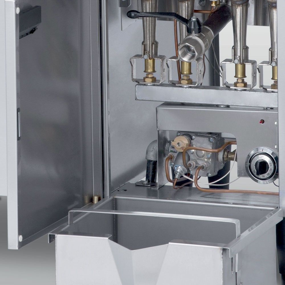 Fritteuse Friteuse Fritöse Gas Gasfritteuse 23 Liter Standgerät NEU Gastlando hergestellt aus Edelstahl Standgerät mit geschlossenem Unterbau 1 Edelstahlbecken mit einer Kapazität von max. 23 Liter 4 kräftige Brenner mit Kaltzone Kontrolleuchte manuelle Zündung Entleeren mittels Ablasshahn Kamin hinten