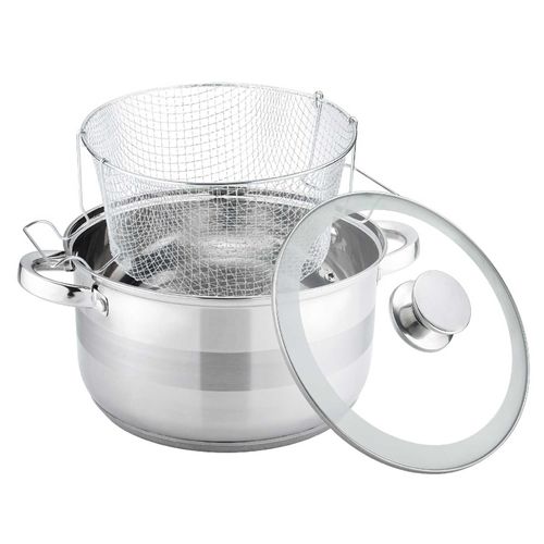 Frittiertopf 6,5 L Edelstahl Glasdeckel Induktion Friteuse Pommestopf Fritöse