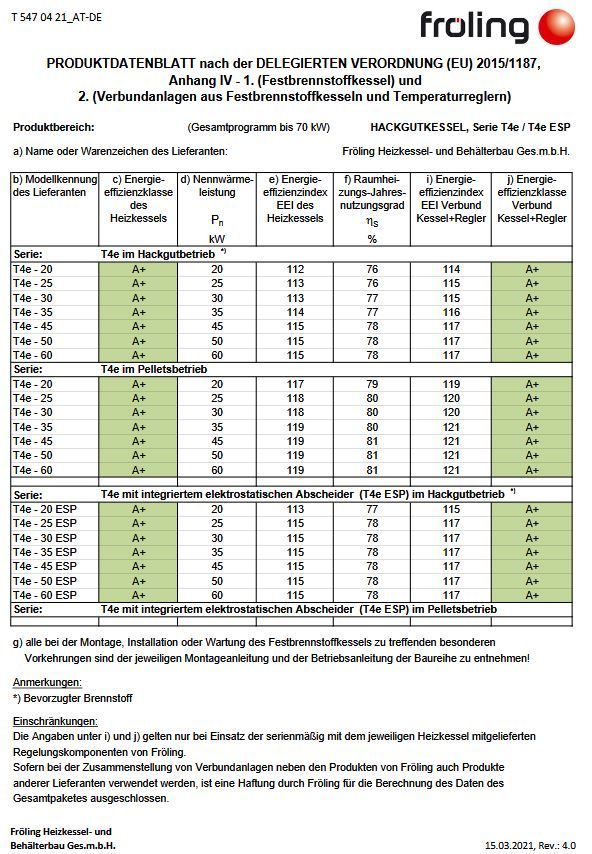 Fröling Fröling Hackgutkessel T4e 60 Stoker links 14708L Hackschnitzel Festbrennstoff