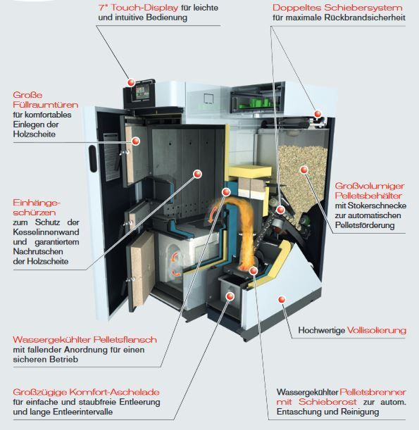 Fröling Fröling Kombikessel SP Dual 28 Scheitholz Holzvergaser Pelletskessel 7" Touch