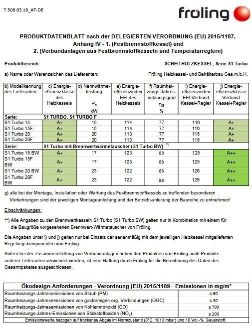 Fröling Fröling Scheitholzkessel S1 Turbo 15 F Holzvergaser Vorbereitung für E-Filter