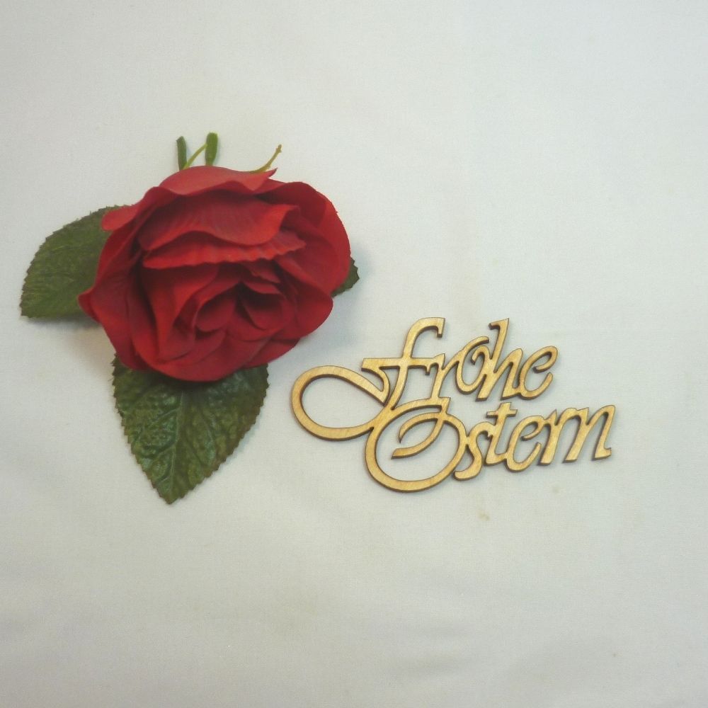 Frohe Ostern Das Holzteil hat eine Größe von 10 x 5,5 cm und ist aus edlem, 3mm starken Birkensperrholz gelasert. Mit diesem geschmackvollen Schriftzug können Sie gestalten und nach Herzenslust Dekorieren! Ob als Kartenaufleger oder am Osterkörbchen ist unser Schriftzug ideal! Der Schriftzug ist in
