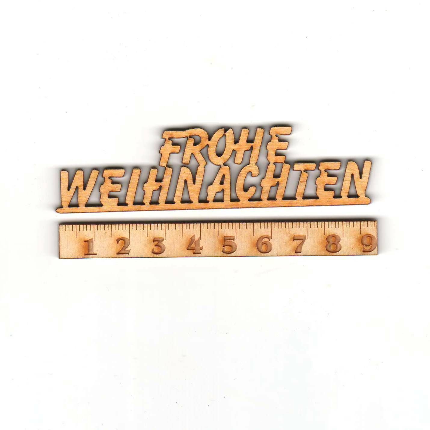 Frohe Weihnachten 9 cm Schriftzug Holz für Dekoration 5 Stück Karten Aufleger