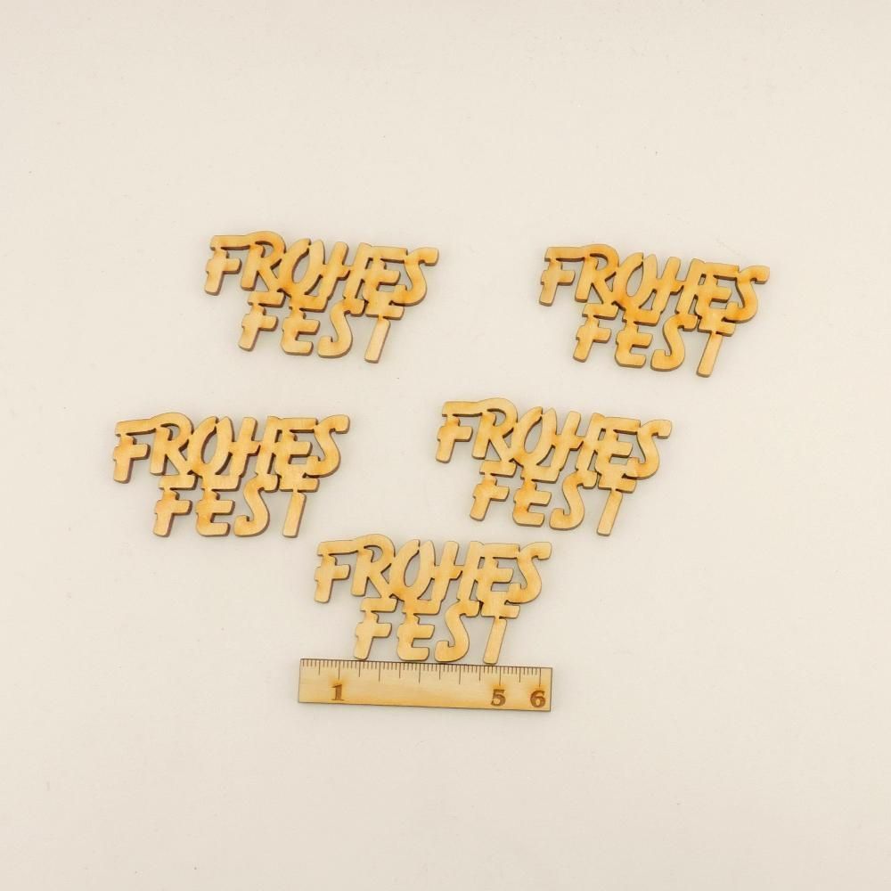 Frohes Fest 6cm Schriftzug Holz für Dekoration, 5 Stck.