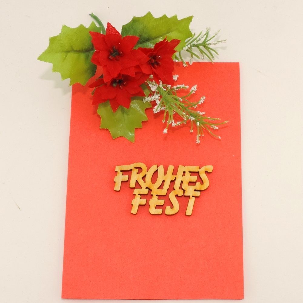 Frohes Fest - Schriftzug aus Holz Mit diesem einfachen Schriftzug können Sie viele Dinge gestalten und nach Herzenslust dekorieren! Auch als Kartenaufleger, Anbringsel am Türkranz oder am Weihnachtsgeschenk ist unser Schriftzug einfach ideal! Anzahl: 5 Stück Breite: 6cm Höhe: 3cm Stärke: 3mm Farbe: natur Material: Birkensperrholz Hergestellt in Deutschland; Mecklenburgische Seenplatte