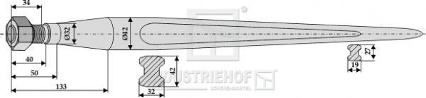 Frontladerzinken Länge 1200 mm Gewinde M28 x 1.5 Profil Doppel - T 32 42 mm Technische Datem: Frontlader Zinken 1200 mm Betsll.-Nr.: 181202 Gewicht: 9.100 kg Form: gerade Profil: Doppel - T 32 42 mm Gewinde: M28 x 1.5 mm Länge: 1200 mm Gewindelänge: 34 mm Schaftlänge gesamt 133 mm Komplette Bemaßung