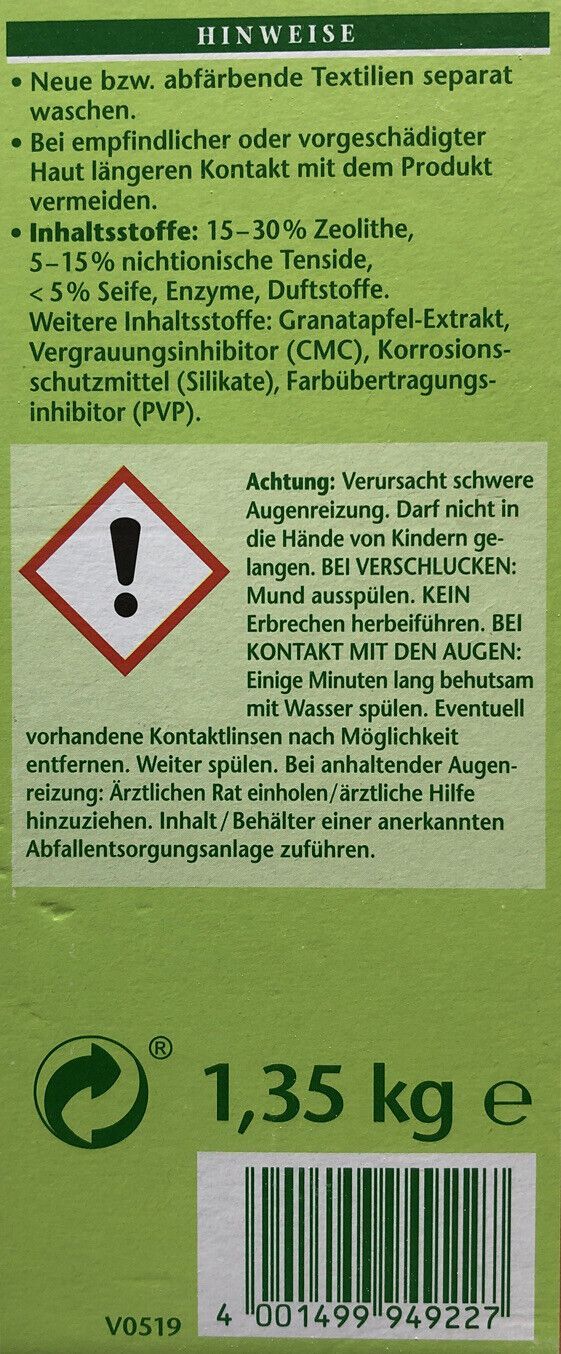 Frosch Frosch Bunt-Waschpulver Farbschützend mit Granatapfelfrische 18 WL 1,35 kg