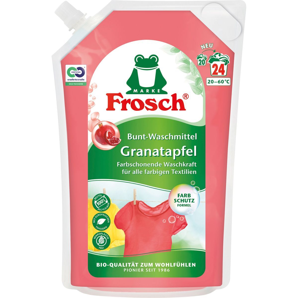 Frosch Granatapfel Waschmittel hohe Waschkraft 24 WL 1800ml 2er Pack