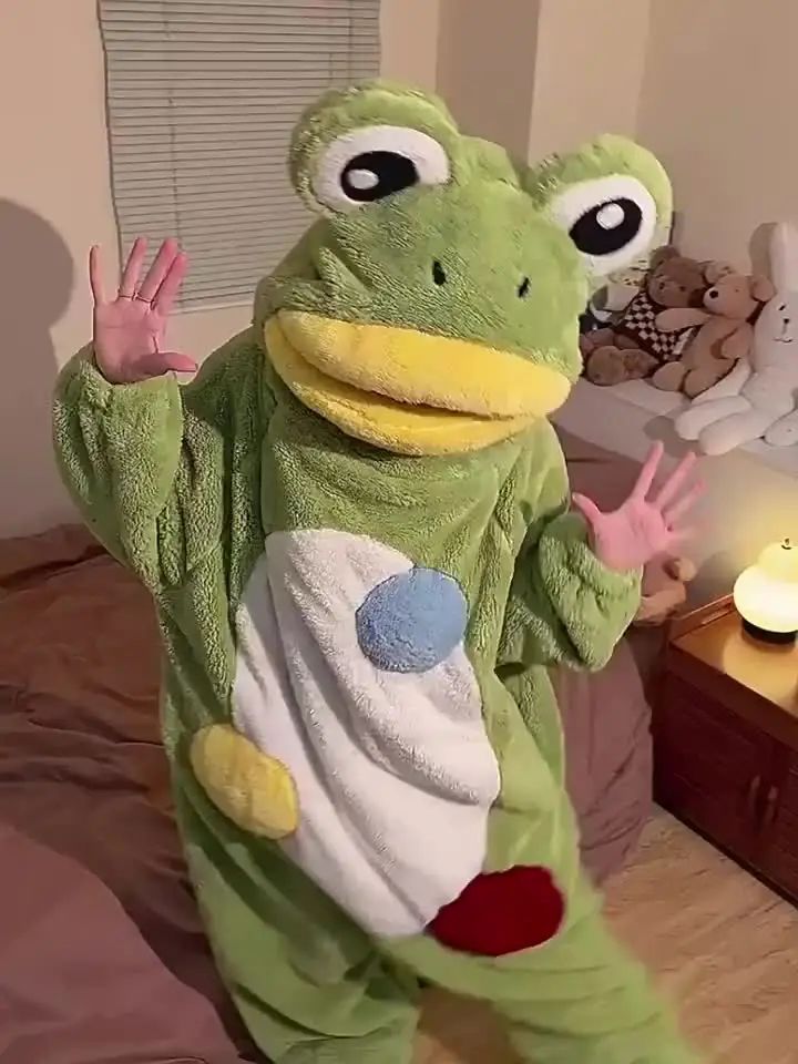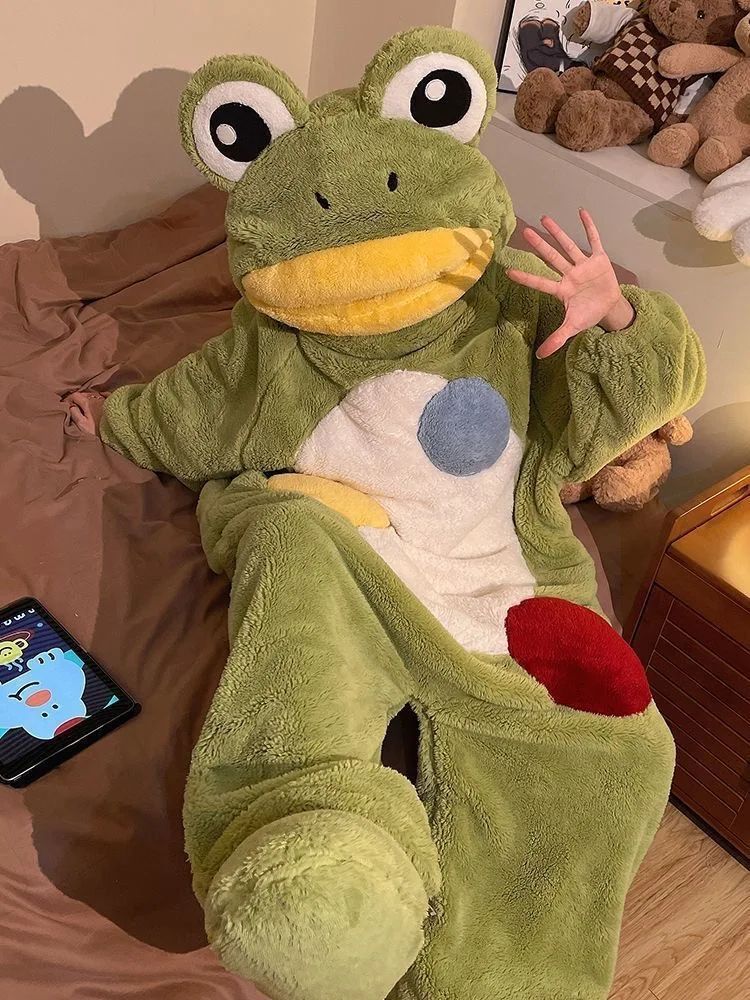 Frosch Onesie Damen Herren Tier Cosplay Pyjamas Plusch Winter Halloween Party