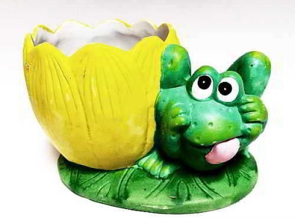 Keramikfigur Ente mit Topf, ca. 11,5 x 8 x 7,5 cm groß die kleine Gesschenkidee für viele Anlässe