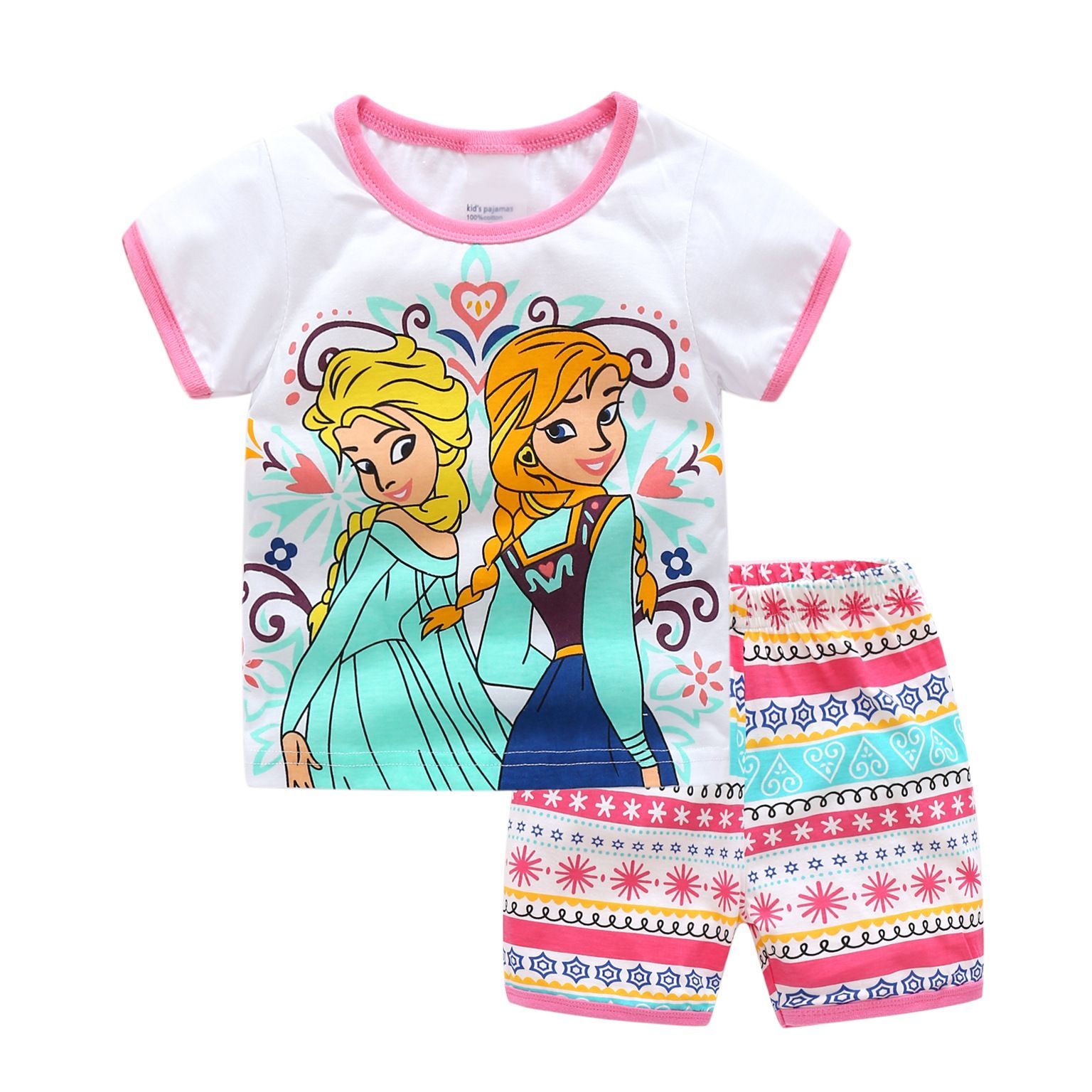 Frozen Elsa Anna Kurzarm Pyjamaset Mädchen Cotton Sleepwear für 2-7 Jahre