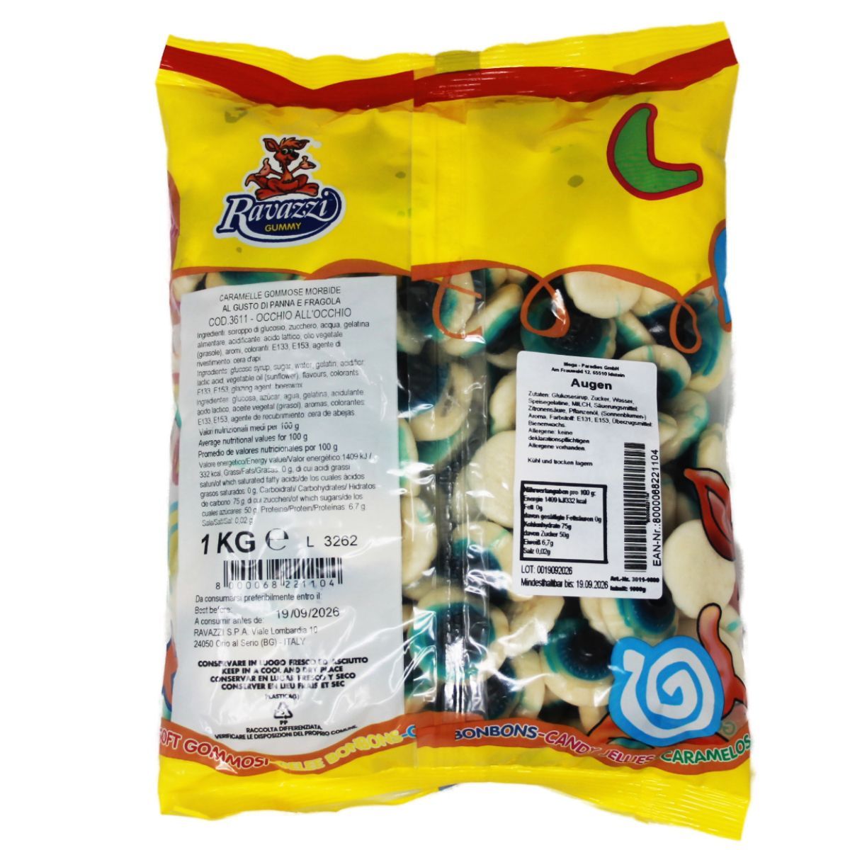 Fruchtgummi Augen Ravazzi mit süßem Sahne Erdbeere Geschmack 300g