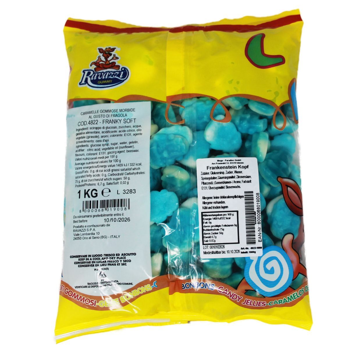 Fruchtgummi Frankenstein Kopf Ravazzi mit Erdbeere Geschmack 300g