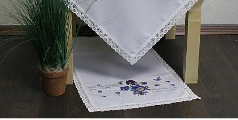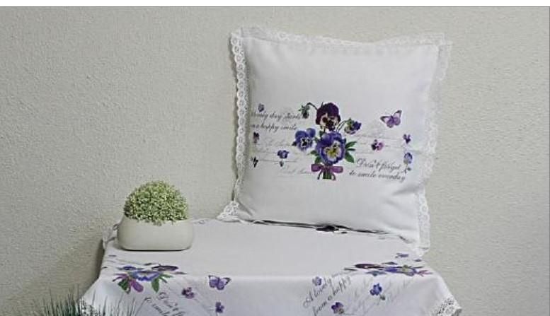 Frühling Hossner Stiefmütterchen mit Spitze Landhaus Heimtextilien Stoff Waschbar