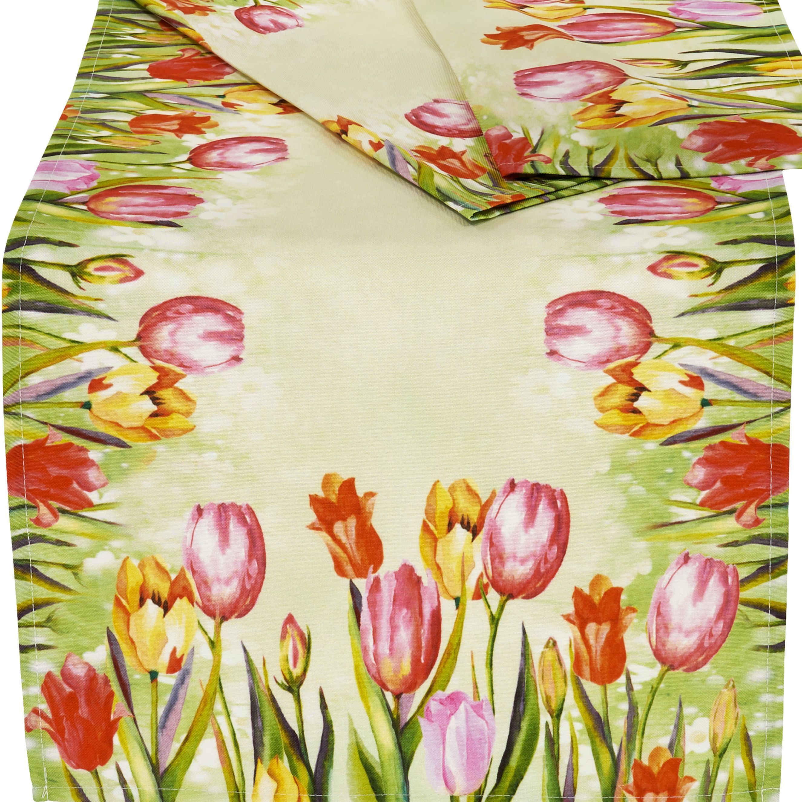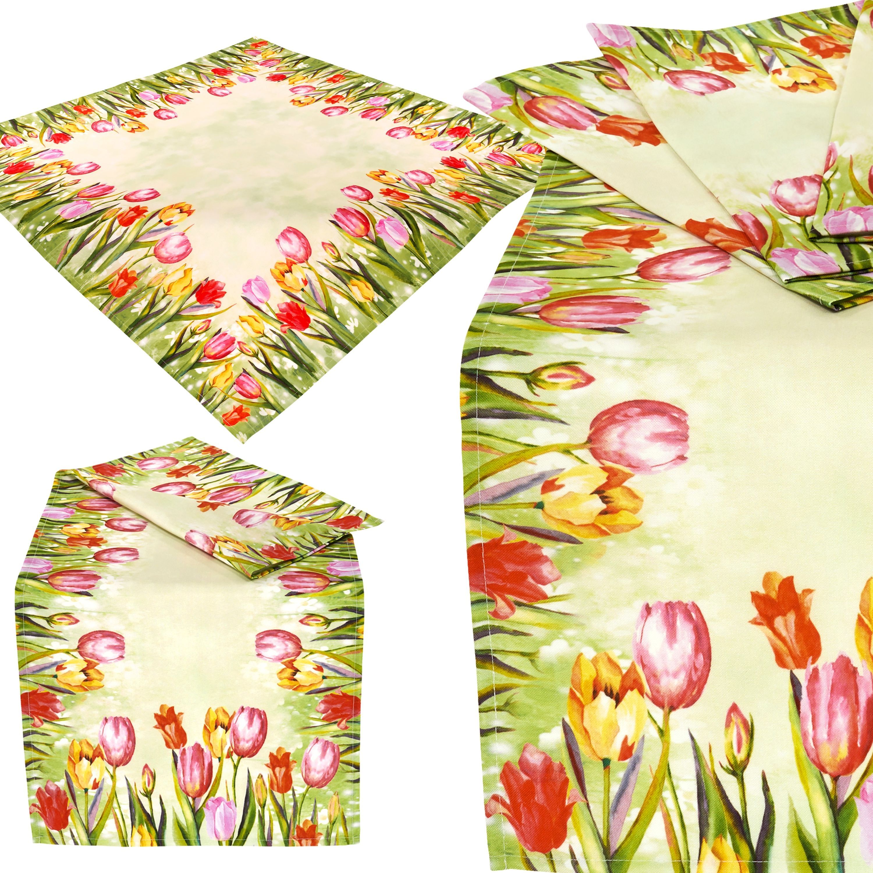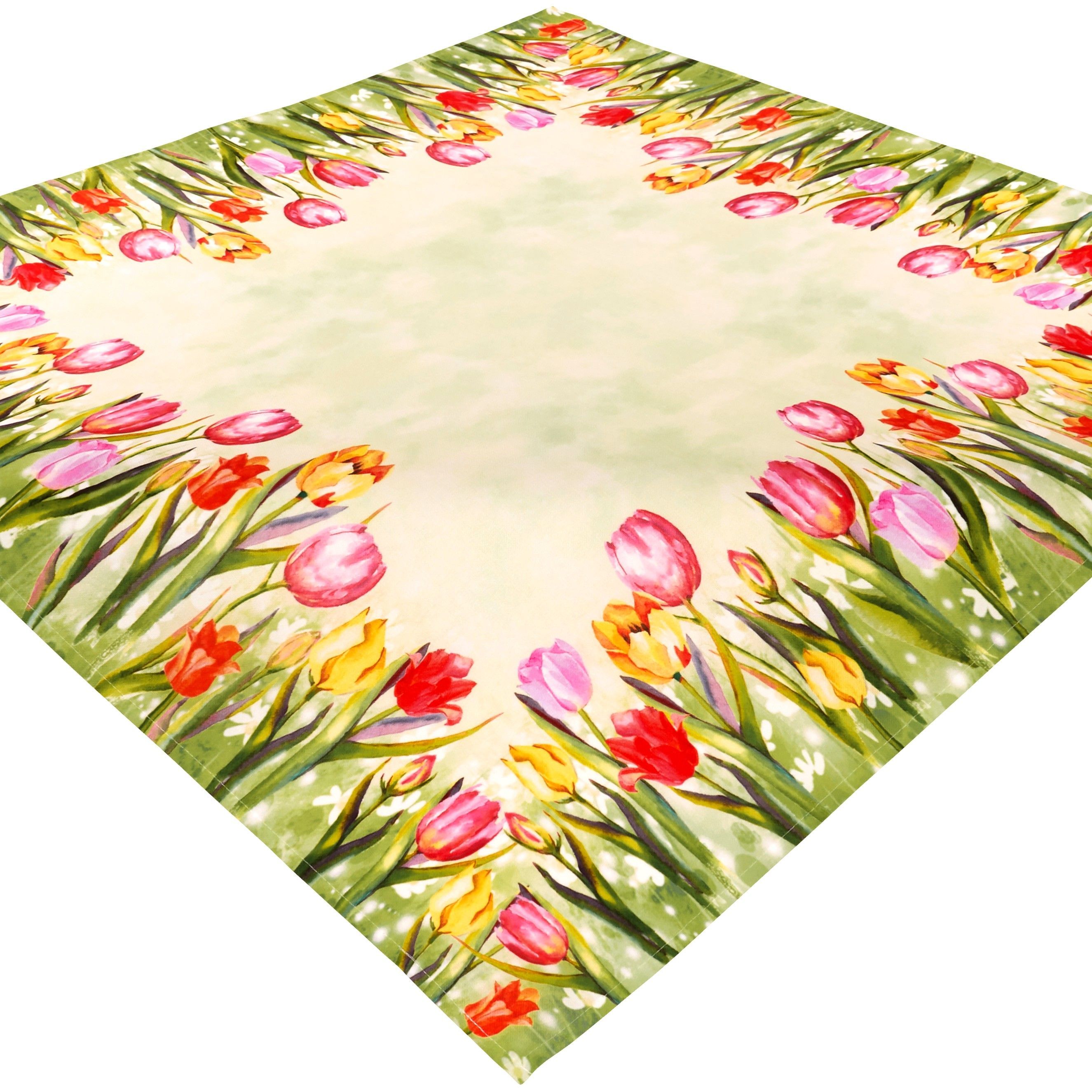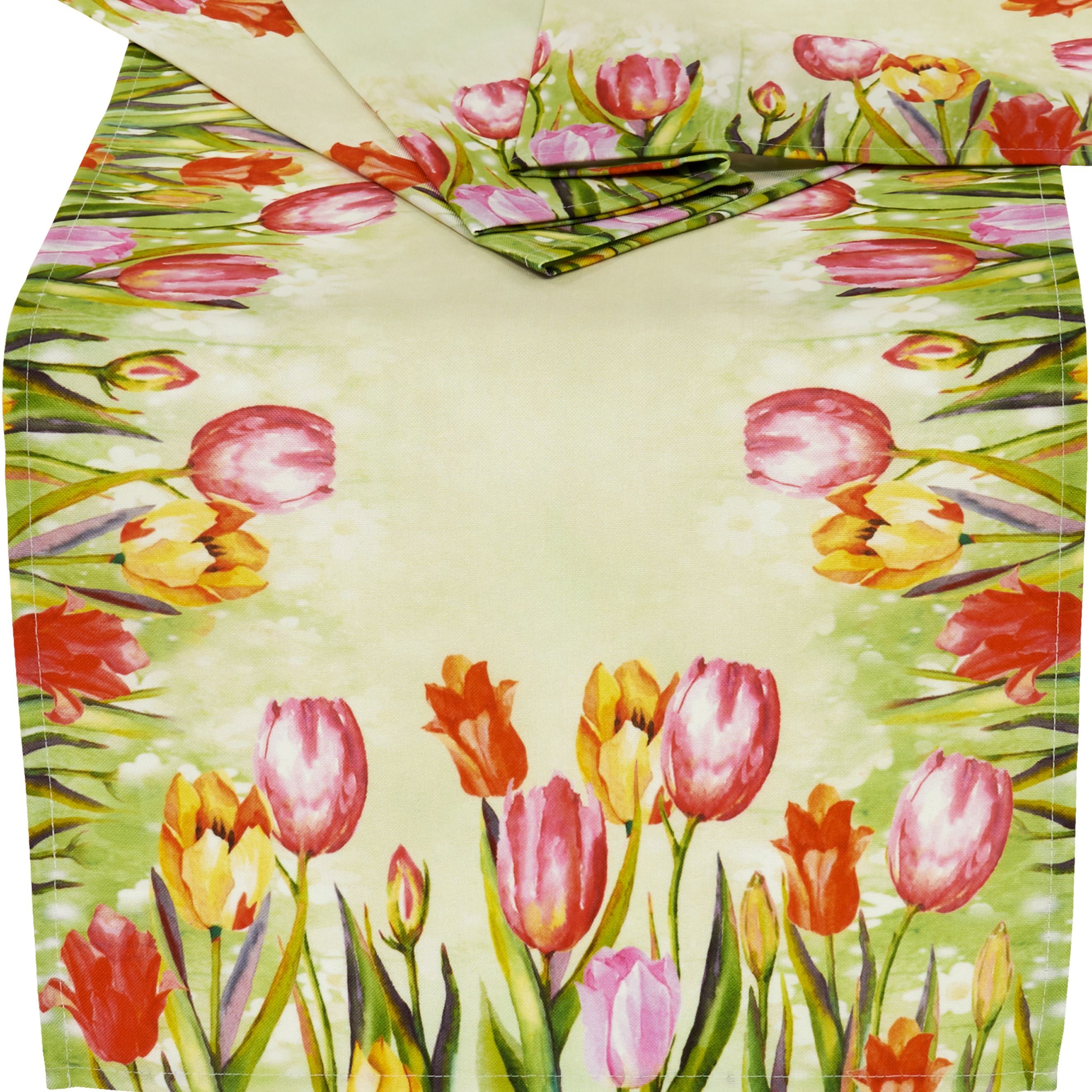 Frühling Tulpen Hellgrün Tischwäsche Pflegeleicht Stoff Waschbar