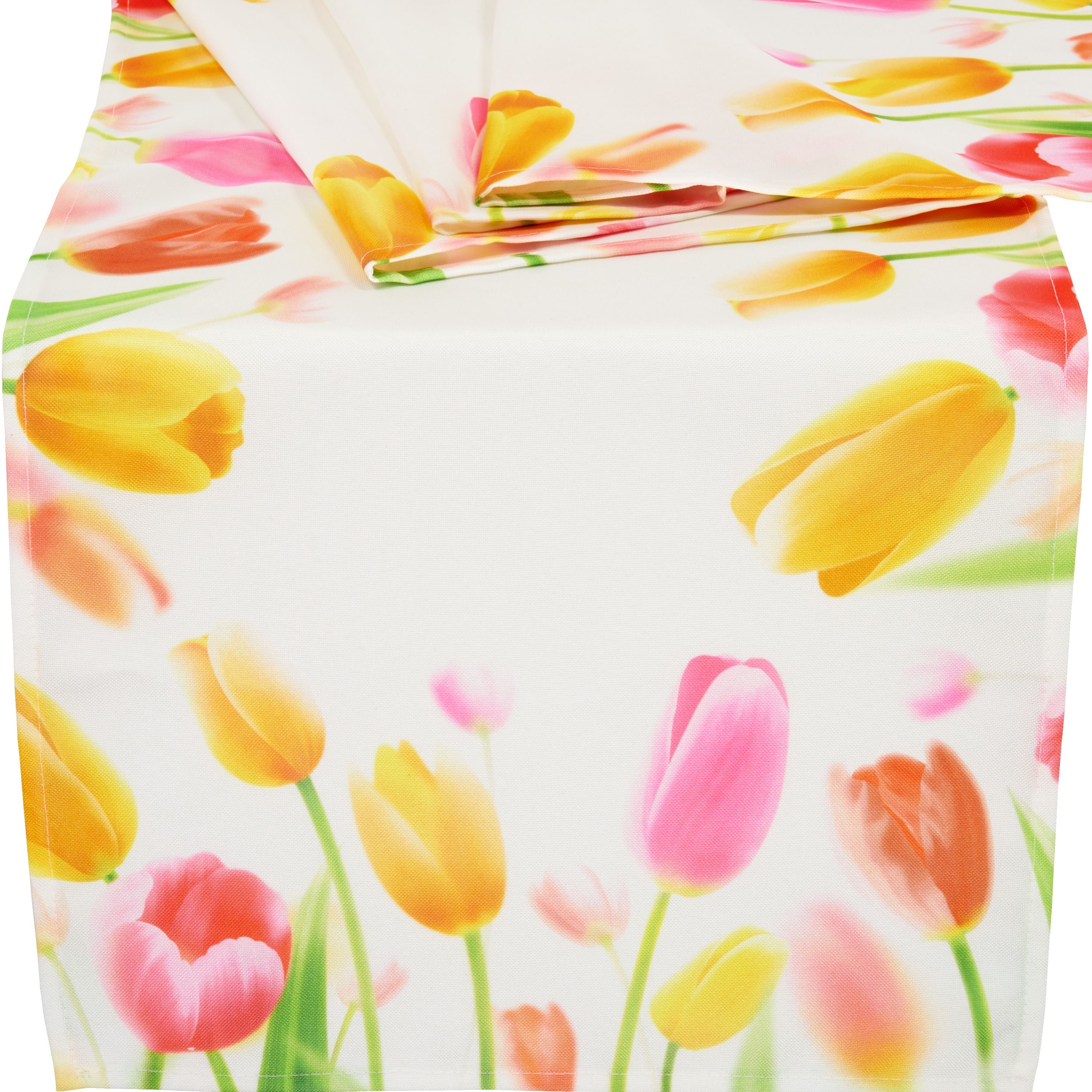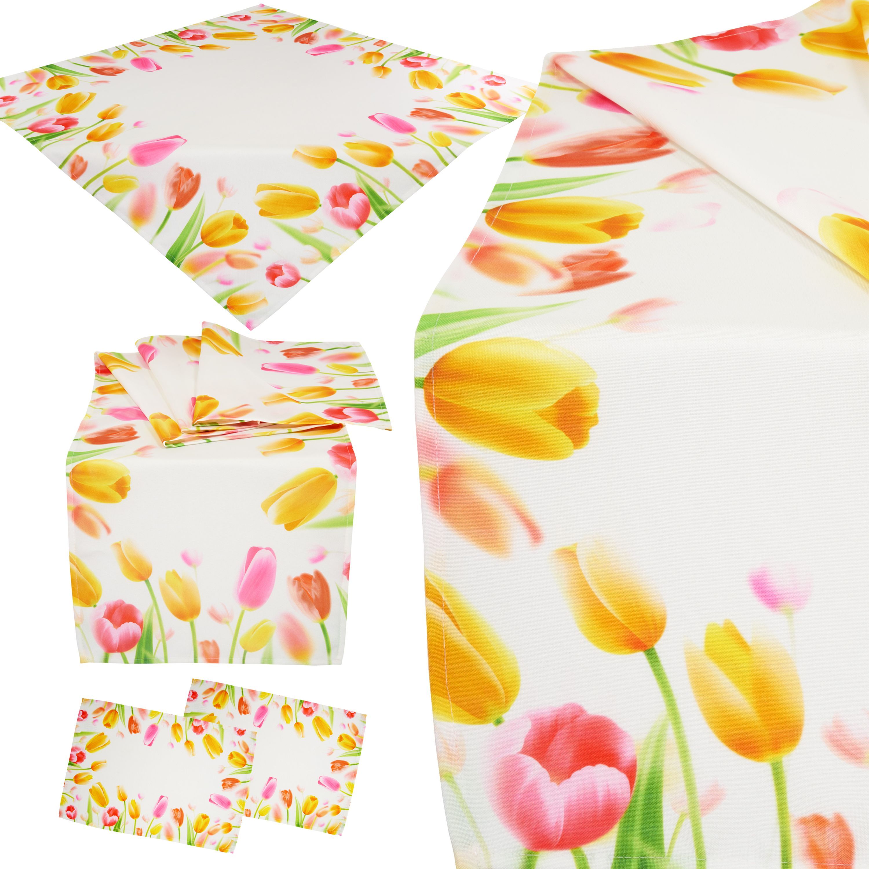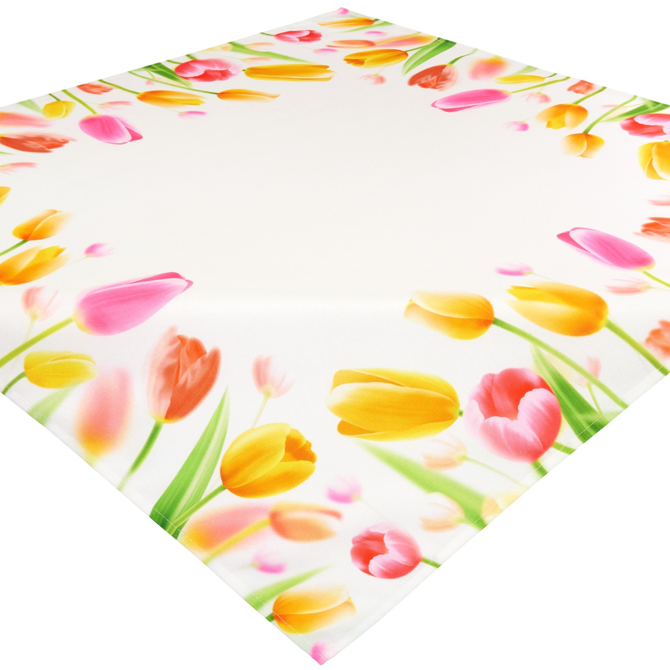 Frühling Tulpen Rosa Gelb Bunt Pflegeleichte Tischwäsche Stoff Waschbar