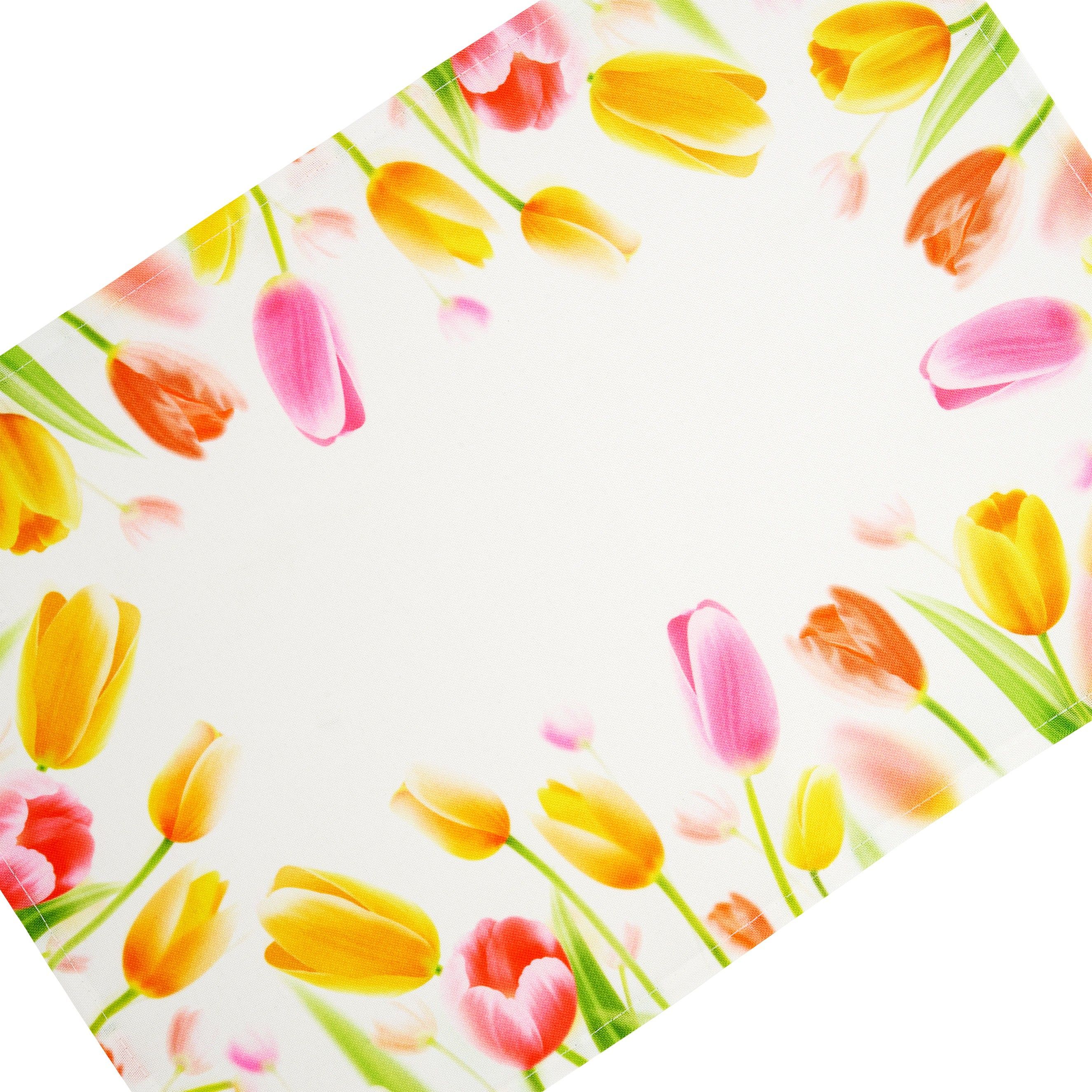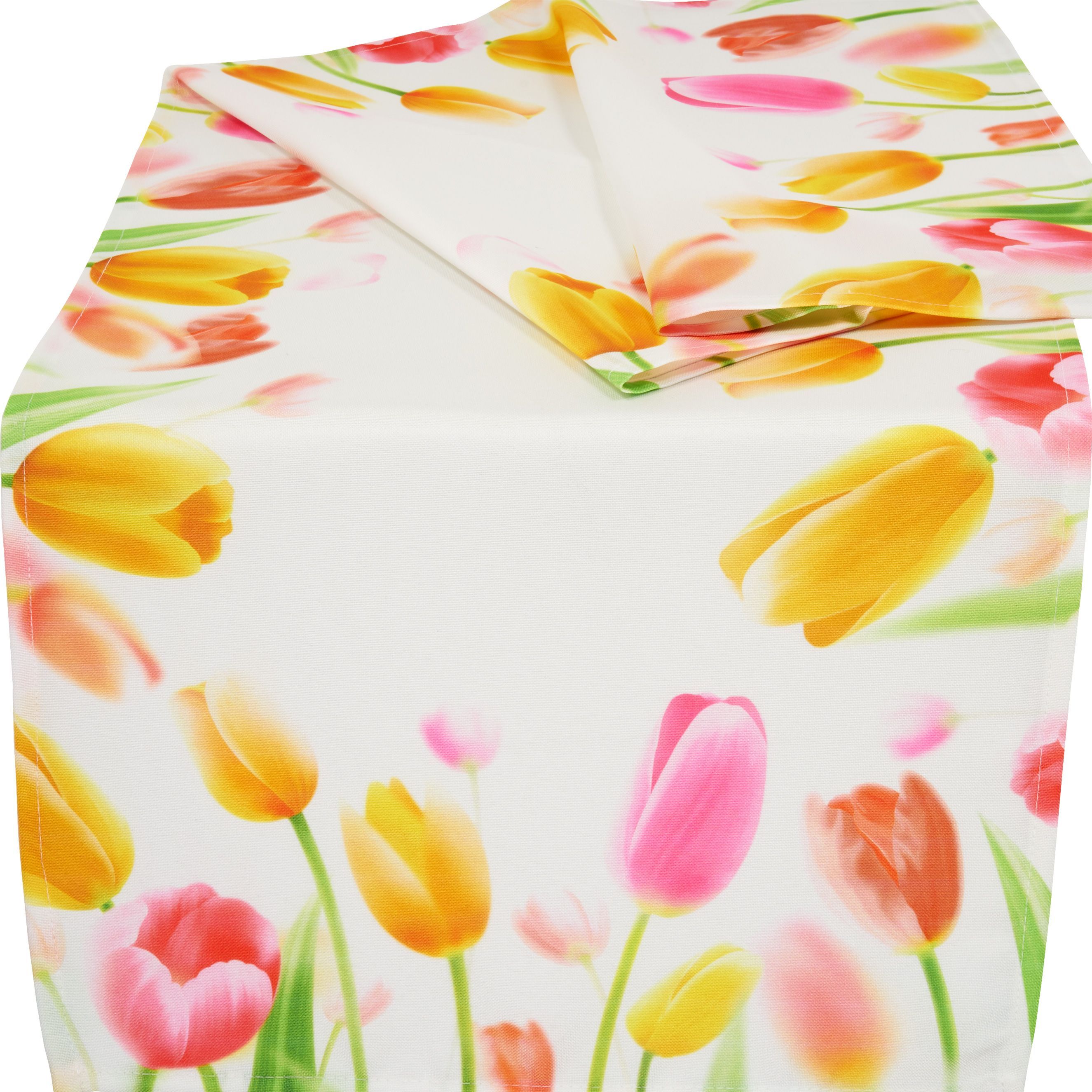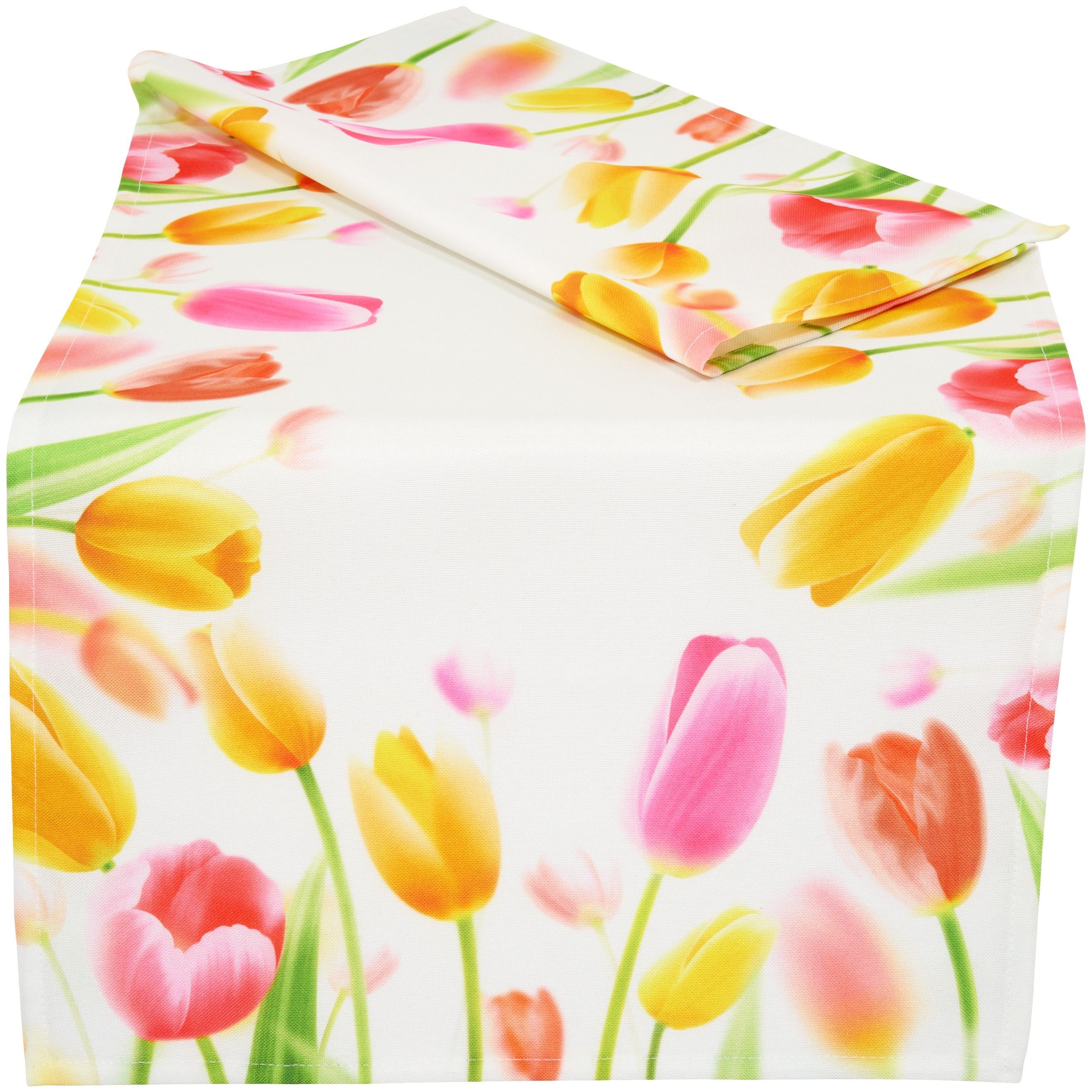 Frühling Tulpen Rosa Gelb Bunt Pflegeleichte Tischwäsche Stoff Waschbar
